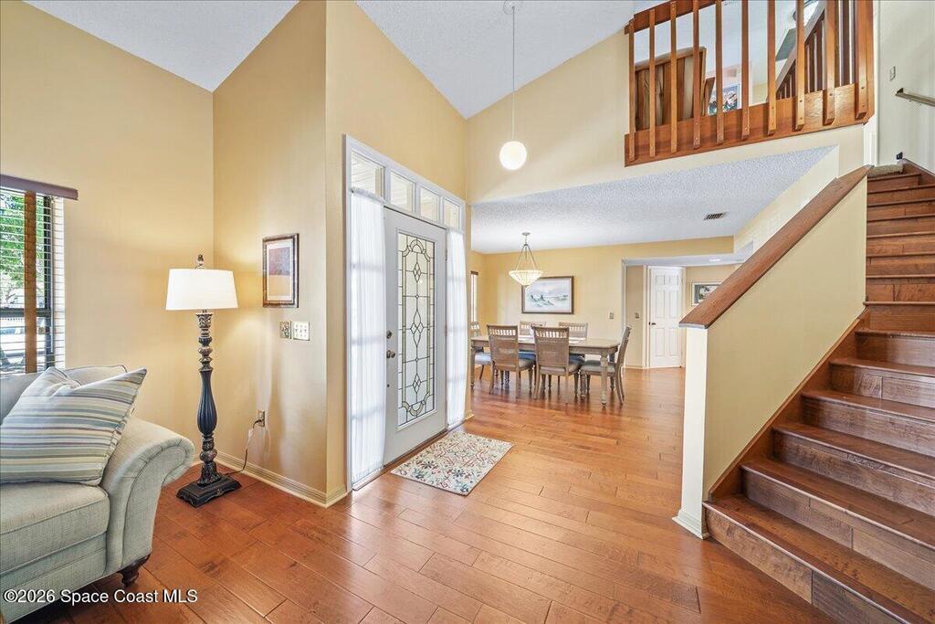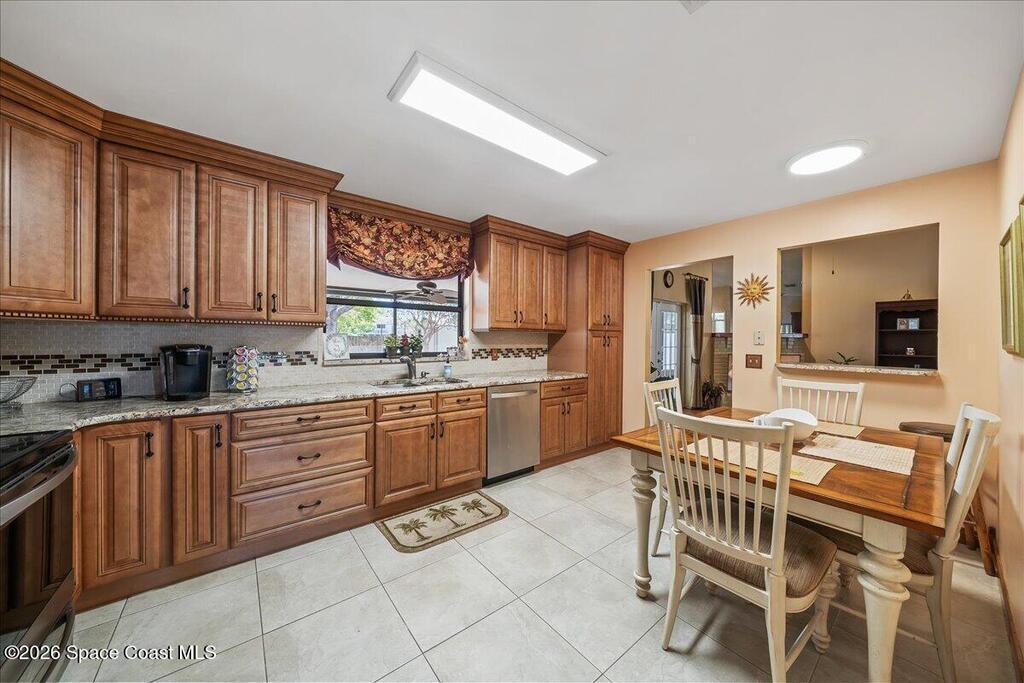 Welcome to this charming 3-bedroom, 2-bath home in the highly desirable Sherwood community of Titusville, FL! Situated on an oversized 1/3-acre lot, this property offers plenty of space both inside and out. The open-concept layout is complemented by well-defined living areas, including a designated dining space--perfect for both entertaining and everyday living. The home features en suite bed/bath options both upstairs and downstairs, offering flexibility and privacy. The large, updated kitchen showcases stainless steel appliances and ample space to cook and gather. Enjoy peace of mind with a brand-new roof completed this month and a newer A/C installed in 2023. Sold fully furnished (negotiable), with washer and dryer included. A shed conveys (contents do not). Don't miss this move-in-ready opportunity!