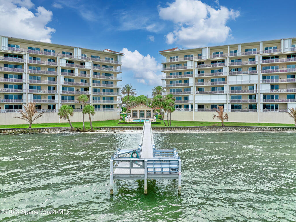 Imagine exquisite river views while sipping morning coffee watching postcard sunrises from your large wrap-around private balcony. Spacious great room with incredible views allow for family and guests to enjoy Florida living! Each of the 3 bedrooms have their own bathrooms. Suites for everyone! Primary bedroom is designed for royalty with wrap around balcony access. The kitchen features a large island, granite countertops, and tons of storage. Community includes heated riverfront pool, clubhouse, dock/pier, kayak storage, and two elevators. Includes one garage parking space with storage plus additional guest parking. I challenge you to find a better condo designed for family, guests, privacy, and living space for everyone. Just minutes to Atlantic beaches, and downtown Melbourne. Short drive to Eau Gallie Art District. Come view this masterpiece and see if you can spot the dolphins and manatees.