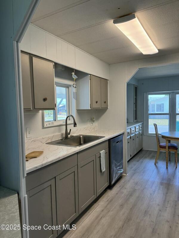 This home has been renovated from top to bottom. Beautiful luxury vinyl flooring throughout, new baths, kitchen, & brand new stainless appliances. Recent water heater, roof, and home has been re-piped. W/D included. The rooms are large, & the master closet is a dream for many! The screened porch is a great spot to enjoy any time of day. Barefoot Bay has so many amenities including golf, beach, river and so much more. A wonderful lifestyle. You can live there and just have a golf cart. One time membership fee $1551.50 to BBRD and yearly in taxes. Easy to show