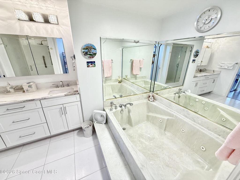 GORGEOUS UPGRADED 3 BEDROOMS/ 2.5 BATHROOMS CORNER PENTHOUSE!! BEAUTIFUL Ocean & Port view from private balcony. NEW Quartz countertops in kitchen, bathrooms, laundry room; New floors in guest bedrooms, New impact hurricane windows, New A/C 2025, New hurricane shutters & electric shutters in guest bedrooms, New medicine cabinets, New light fixtures & ceiling fans, New water valve in laundry room, and private 2 car garage under building w/ new flooring. XLNT location near all thoroughfares w/ easy access to Port Canaveral, KSC, Patrick AFB, restaurants, shopping centers, 520, 528, just about an hour to Orlando & attractions. A MUST SEE!!