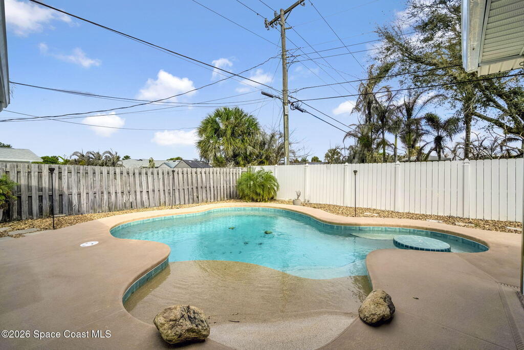 Welcome to effortless beachside living in this beautifully updated 3-bed, 2-bath home with a two-car garage, ideally located in the heart of Satellite Beach. Priced at $599k, this beachside pool home offers an incredible opportunity to own in Satellite Beach at a price point that's becoming increasingly hard to find. The backyard is your private oasis featuring a saltwater pool (2017) with a Baja shelf for lounging and an in-water table--perfect for soaking up sunny Florida afternoons. The open-concept kitchen has been tastefully updated and features a convenient pass-through window to the oversized screened lanai. The spacious, fully fenced backyard is beautifully landscaped and includes a storage shed, offering both privacy and functionality. Peace of mind with durable 2018 metal roof and NEW A/C! Quiet neighborhood just a short walk, bike or golf cart ride to the beach, local restaurants, and vibrant hotspots. Call/text today to begin living the laid-back Satellite Beach lifestyle!