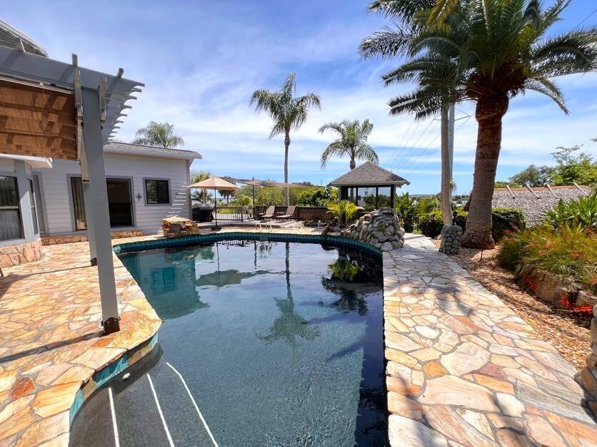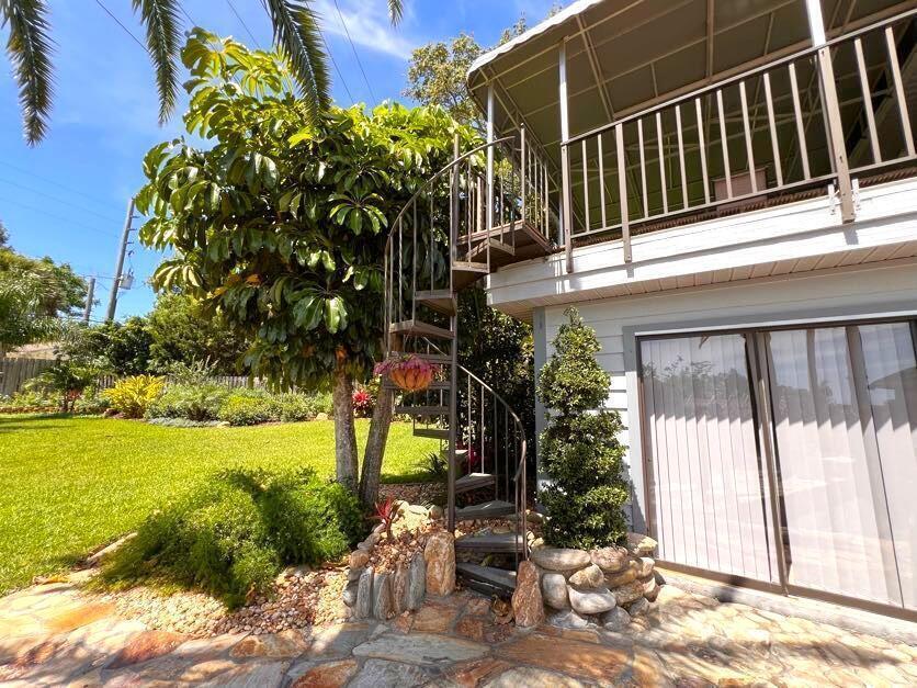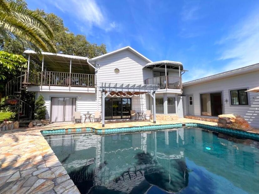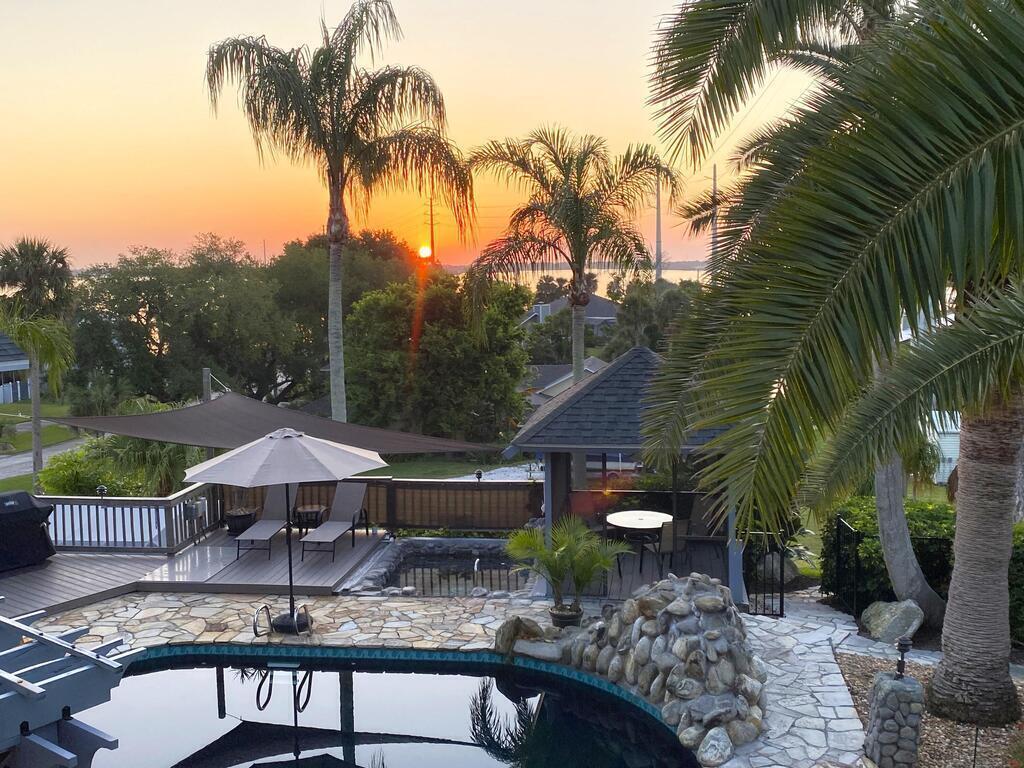 Welcome to the Tropical resort. Gorgeous 3 bedrooms/ 4 bathrooms SFH of scenic Indian River Drive. Step into luxury w/ a huge private backyard, swimming pool w/ in-ground spa, outdoor shower, screened gazebo, Tiki bar, koi pond, Key West style lush tropical landscaping. Modern decor & light fixtures, elevator, washer & dryer, garage, walk-in showers. Enjoy 2 living spaces w/ a great room & formal living room. 2 full bath downstairs w/ one outside access from pool. Master suite in the 2nd floor w/ 2 roomy closets, spacious walk-in shower, dry bar, private access to large deck & private balcony. From your master suite watch the rocket launch take-off & landing. Shared dock w/ a beautiful river view. Easy access to Port Canaveral, KSC, beach-lines, 528 & just 45 mins to Orlando/ attractions.