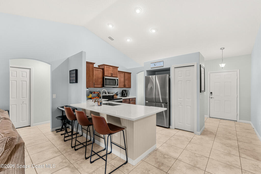 Welcome to this beautifully maintained 2023-built home in the desirable Port St. John area of Cocoa! Offering over 1,600 square feet of living space, this 4-bedroom, 2-bathroom home is now available for you & your family! Step inside to an open-concept floor plan featuring a spacious living and dining area, perfect for entertaining or everyday living. The kitchen is a standout with elegant quartz countertops, tons of cabinetry, and plenty of prep space for cooking and hosting.The split-bedroom layout provides privacy for the primary suite, while three additional bedrooms offer flexibility for family, guests, or a home office.Outside, enjoy a fully fenced backyard perfect for pets & outdoor activities. Store all of your tools and equipment in the hurricane-rated shed, and appreciate the added convenience of full gutters already installed. Don't miss your opportunity to own this move-in ready home in a growing area close to shopping, dining, and easy access to local beaches!