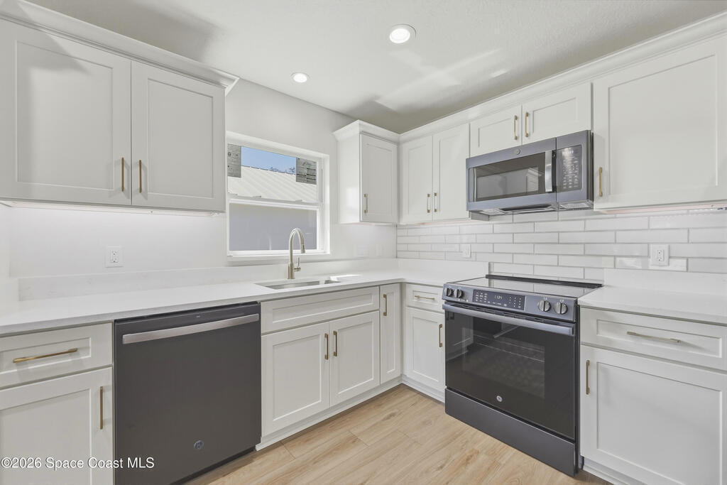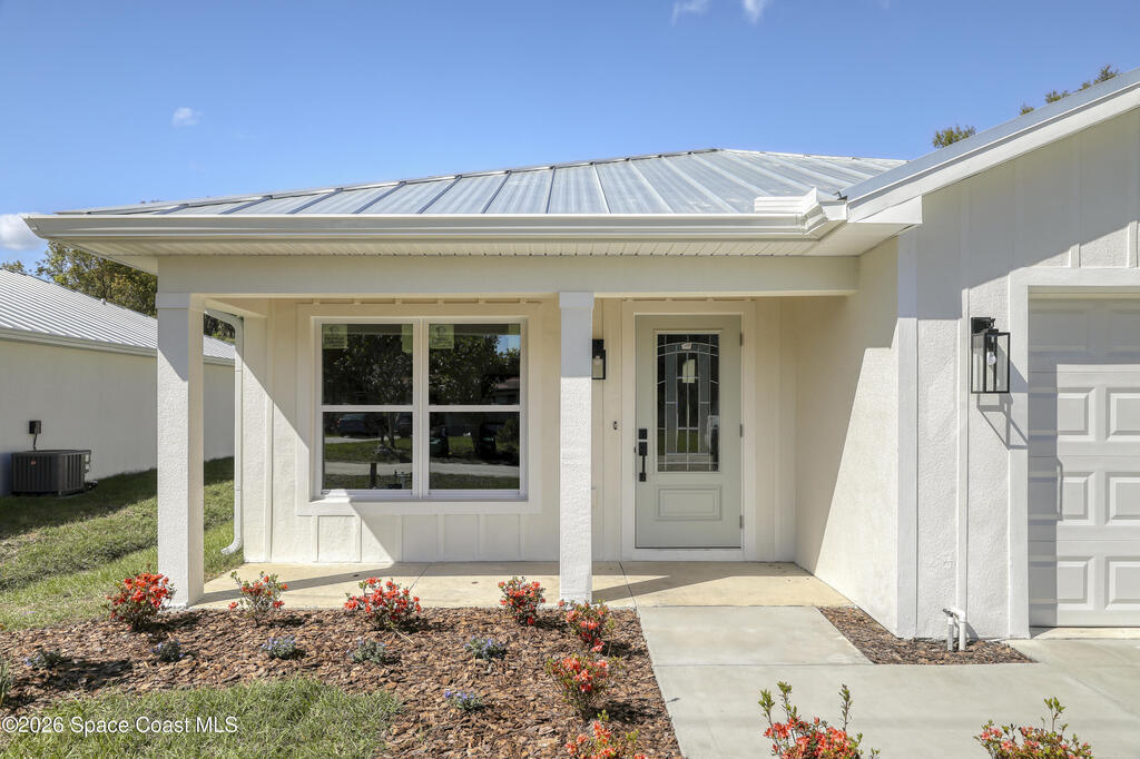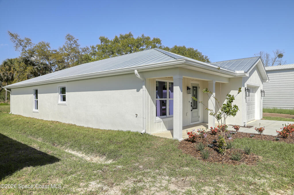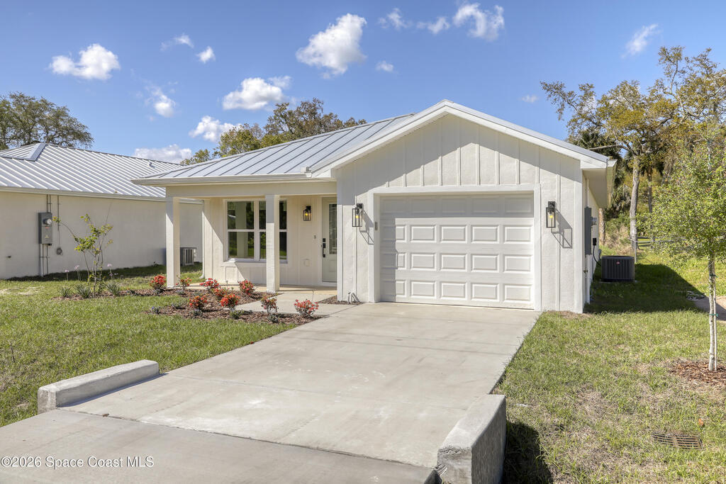 Style, quality, and thoughtful design come together beautifully in this heavily upgraded brand new home. From the striking board and batten stucco front and standing seam metal roof with plywood decking to the carefully selected interior finishes, every detail was chosen with today's buyer in mind. The open living space features a stunning coffered ceiling and flows seamlessly into a designer kitchen complete with Level 2 quartz countertops, white cabinetry, subway tile backsplash, GE appliances, and flooring and tile selections from Floor & Decor. The spacious primary suite includes a large walk-in closet and a beautifully finished bath with dual sinks and a fresh, modern look. With covered front and rear porches with tongue & groove ceilings, an indoor laundry room, and a clean, inviting layout, this home offers both everyday comfort and polished style. Every door and window is impact rated and water softeners are included as well! Owner is a LREA.