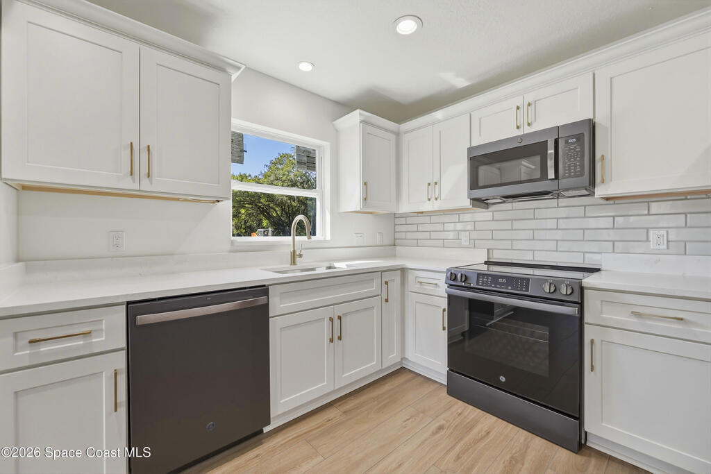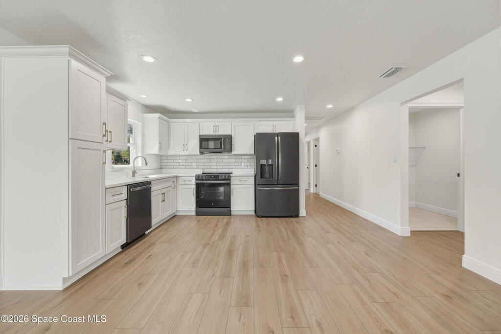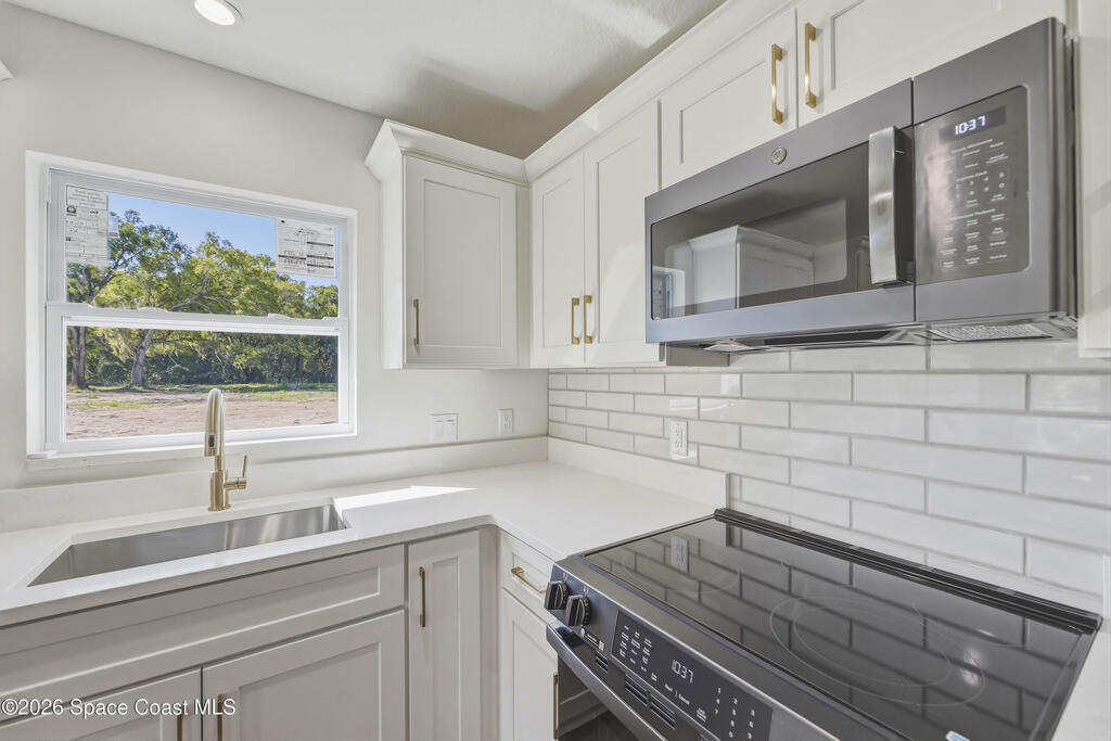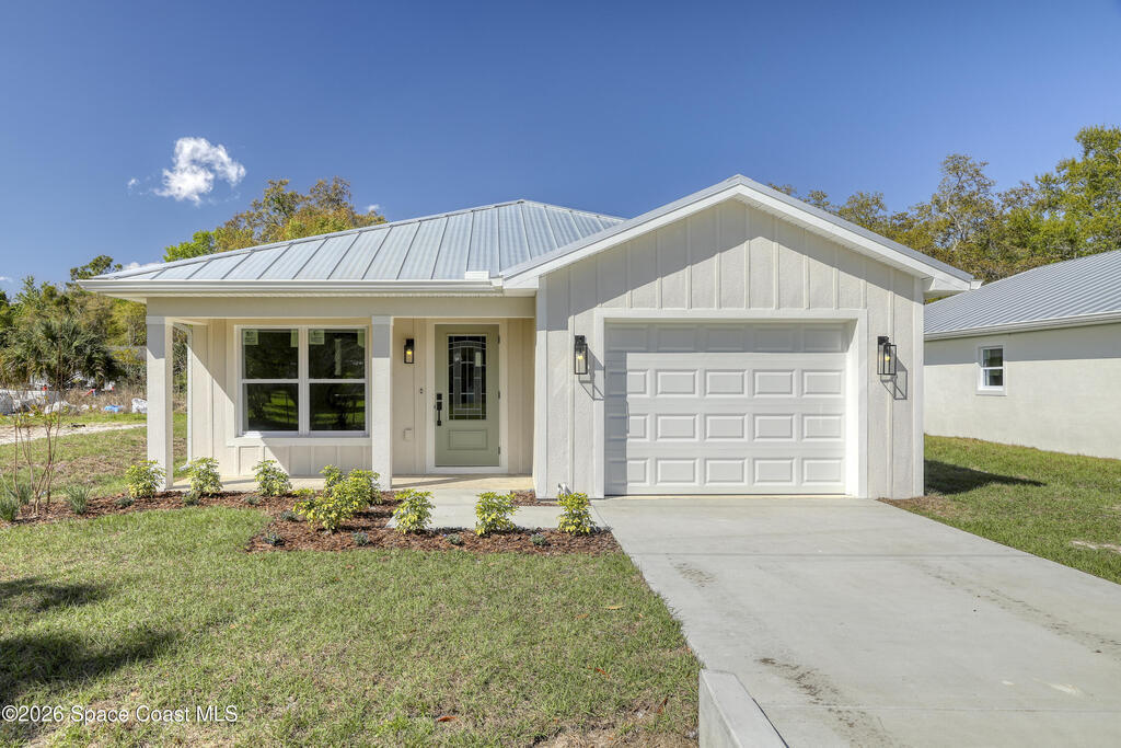 Style, quality, and thoughtful design come together beautifully in this heavily upgraded brand new home. From the striking board and batten stucco front and standing seam metal roof with plywood decking to the carefully selected interior finishes, every detail was chosen with today's buyer in mind. The open living space features a stunning coffered ceiling and flows seamlessly into a designer kitchen complete with Level 2 quartz countertops, white cabinetry, subway tile backsplash, GE appliances, and flooring and tile selections from Floor & Decor. The spacious primary suite includes a large walk-in closet and a beautifully finished bath with dual sinks and a fresh, modern look. With covered front and rear porches with tongue & groove ceilings, an indoor laundry room, and a clean, inviting layout, this home offers both everyday comfort and polished style. Every door and window is impact rated and water softeners are included as well! Owner is a LREA.