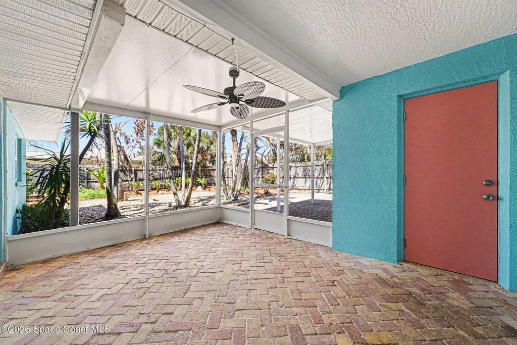 Just a short stroll from the beach, this charming coastal solid block home is only one block from Pelican Beach Park, offering easy access to the beautiful sandy shores of Satellite Beach. Featuring 4 true bedrooms, 2 updated baths, and a game room complete with a fireplace, it's perfect for relaxed Florida living. Enjoy your screened lanai while admiring tropical plants ready to bloom. A new metal roof and quality impact windows were added in 2023, along with granite counters in the updated kitchen. The lush tropical yard boasts multiple varieties of hibiscus and low-maintenance Florida landscaping. Conveniently located near restaurants and shopping, this home truly has it all.
