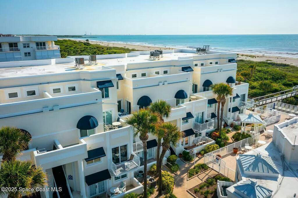 Experience coastal living in this well appointed oceanfront penthouse! Offering 2BRs/2BAs, this retreat is located within the exclusive gated Royal Mansion community. The open concept living & dining area on the second floor features a stocked kitchen, breakfast bar, a bedroom with a full bath & a new washer/dryer combo. Access a private ocean view balcony from both the living room & bedroom. The third floor primary suite offers a full bath with a stand up shower & tub/shower combo with a private oceanfront outlook. This residence features hurricane windows & sliders, ceiling fans & comes fully furnished, including all appliances. Indulge in resort style amenities, including private beach access, a heated pool & a hot tub. Whether you envision it as your personal get away or a sought after vacation rental, this oceanfront sanctuary is perfectly positioned near the excitement of Port Canaveral. This opportunity promises an unparalleled lifestyle. Make it yours today