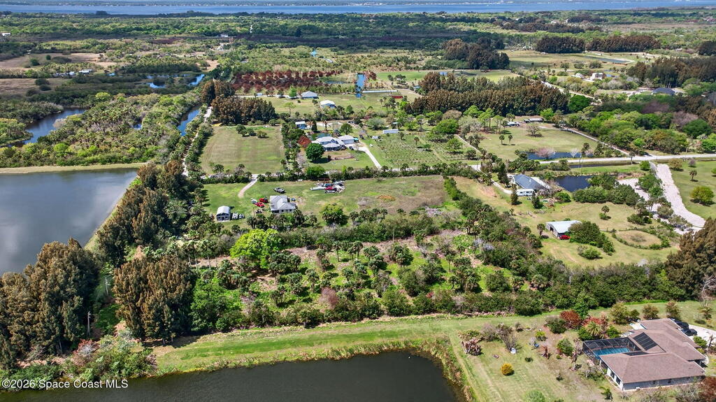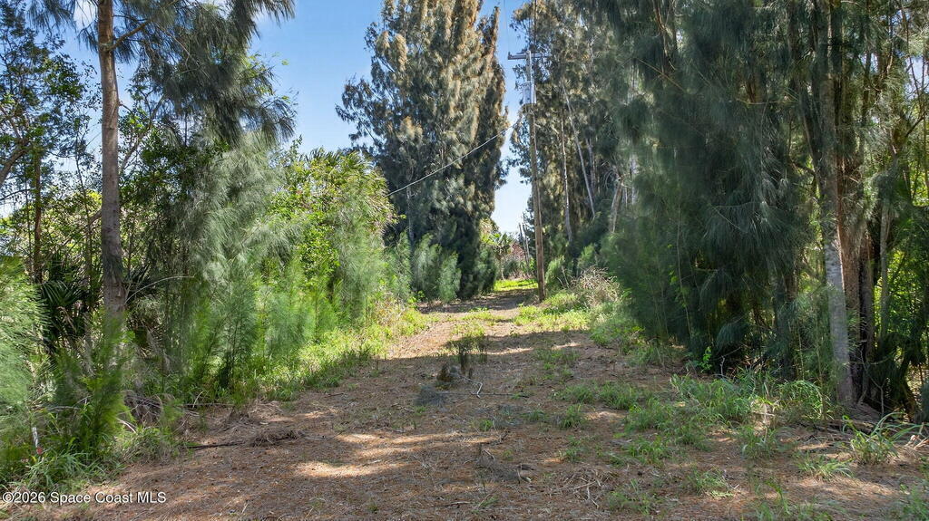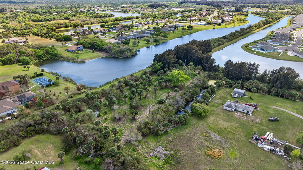Beautiful water views on this partially cleared 2.5 acres in N. Merritt Island! Privacy and beauty abounds! Electric and water are close by. Zoned residential but could be changed. Flag lot access at the end of the street makes for the ultimate retreat. Water on the east and south sides. Studies have been completed. Parcel is not buildable right now because of current septic moratorium. Hoping for release quickly. Please see attached documents With no septic tank permits being issued the ideal use is Agricultural or utility use like landscaping equipment storage, greenhouse operations or nursery development with change to AU zoning. Please do not walk on property without permission. BUYER ASSUMES ALL LIABILITY WHEN WALKING PROPERTY. Owner will hold mortgage.