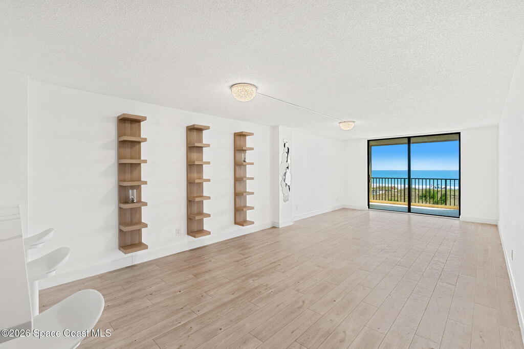 DIRECT OCEAN VIEWS | HUGE BALCONY | BEST VALUE ON THE BEACH!Direct, unobstructed Atlantic Ocean views hit you the second you walk through the door of this 3rd-floor condo at Royale Towers. The oversized private balcony delivers wide, sweeping ocean views, perfect for rocket launches, cruise ships, and endless sunrises.Inside, the open layout is built around the view, with tile and luxury vinyl flooring throughout (no carpet). The updated kitchen features soft-close cabinetry, quartz countertops, tile backsplash, beadboard ceiling, and recessed lighting.Additional highlights include in-unit laundry, hurricane shutters, a 1-car garage, and a spacious primary suite.Resort-style amenities include a heated pool, spa, clubhouse, fitness center, sauna, tennis, and pickleball. Pet-friendly and ideally located near Publix, restaurants, Lori Wilson Park, and the dog park.You don't often find direct ocean views like THIS at THIS price point. Schedule your tour today!
