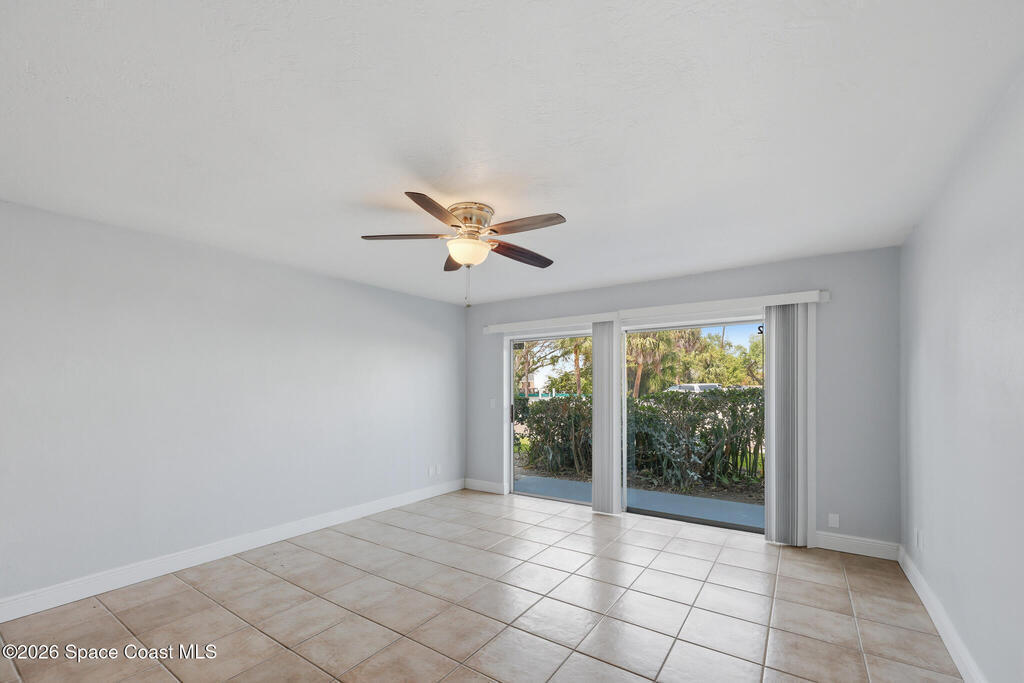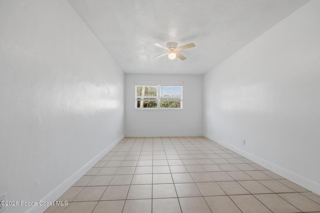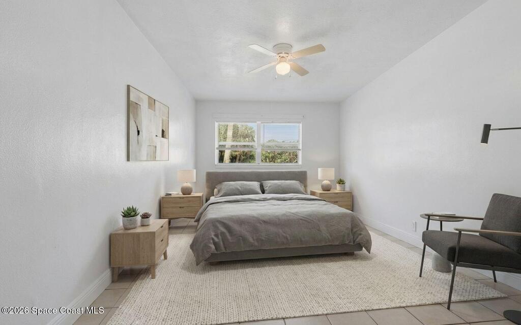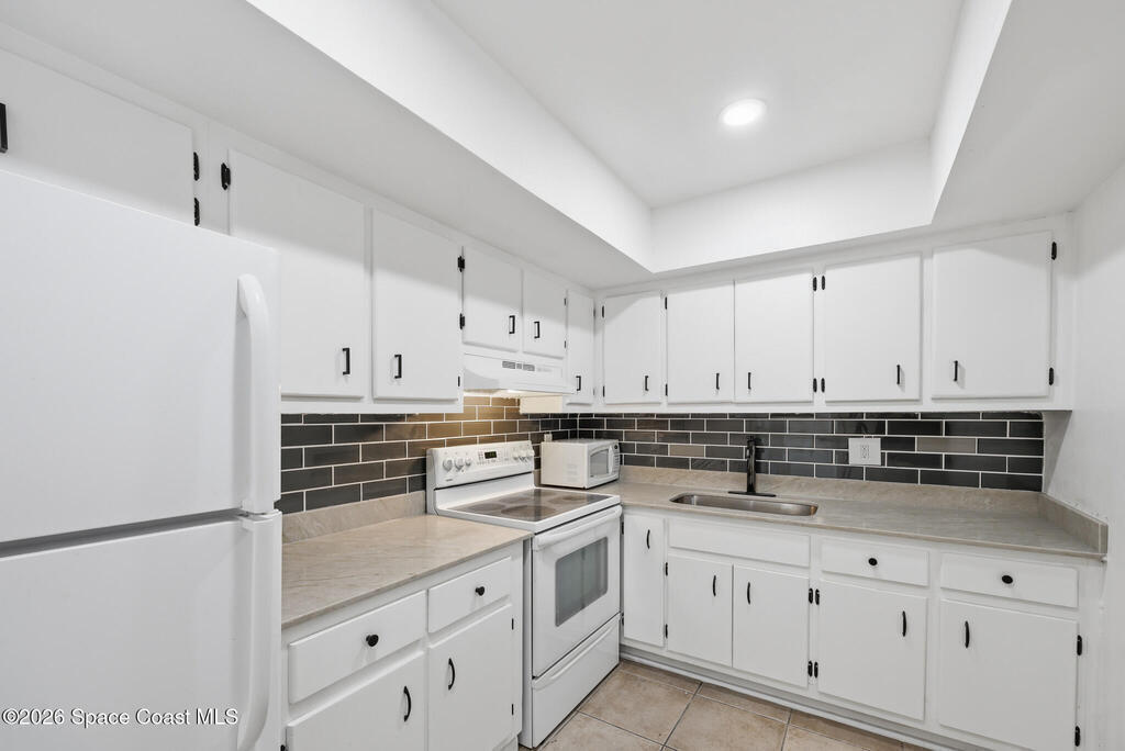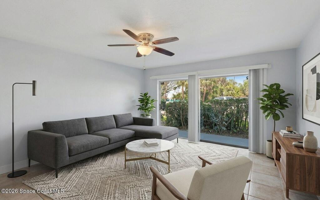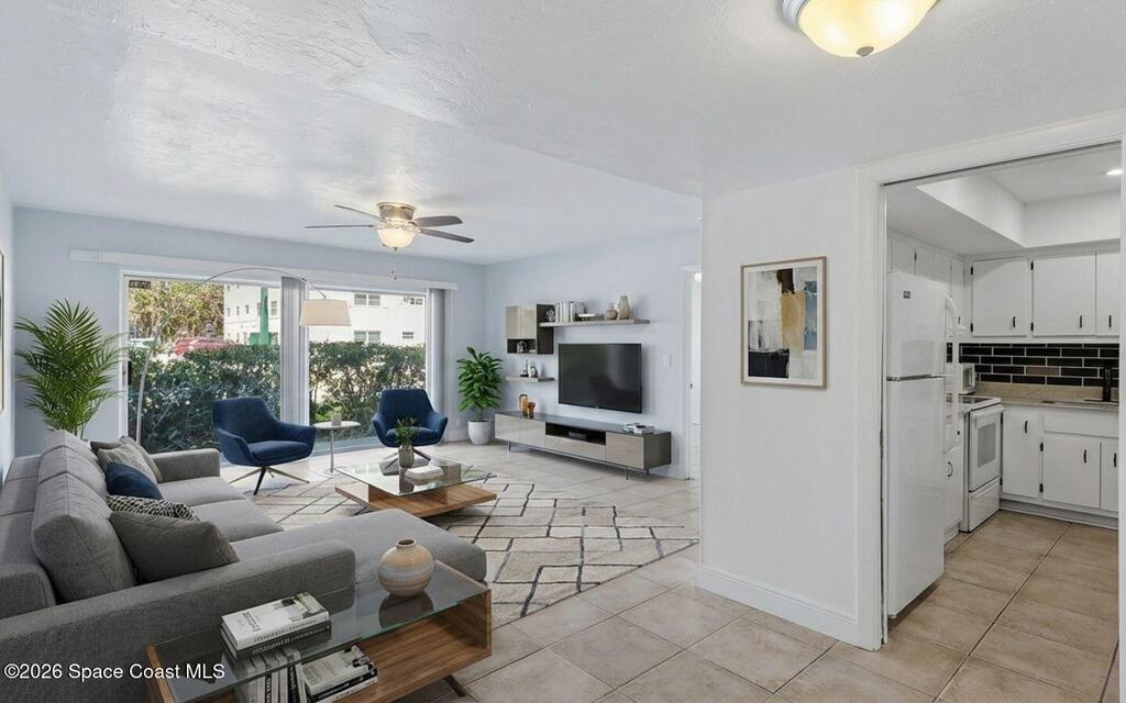 First-floor end-unit condo with 3 bedrooms and 2.5 baths, conveniently located near Port Canaveral, the Cocoa Beach Pier, downtown Cocoa Beach, and SR 528 for easy access.The kitchen is finished with quartz countertops, tiled backsplash, recessed lighting and the bathrooms have been updated with matching quartz and modern fixtures. Fresh interior paint throughout, updated baseboards, lighting, and ceiling fans carry throughout the unit. Additional features include window treatments, closet built-ins and a brand new tankless water heater.North-facing back porch with direct rocket launch views 🚀Monthly rentals permitted. The low HOA includes water, sewer, trash and the community offers a secured lobby, pool, clubhouse with kitchen and meeting space, sauna, and laundry facilities.