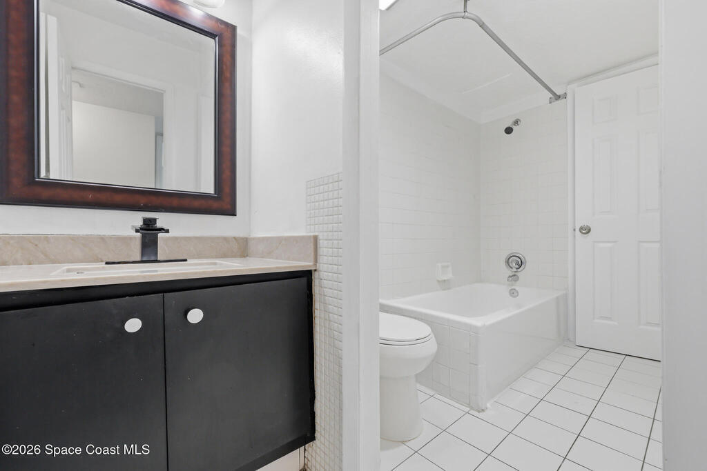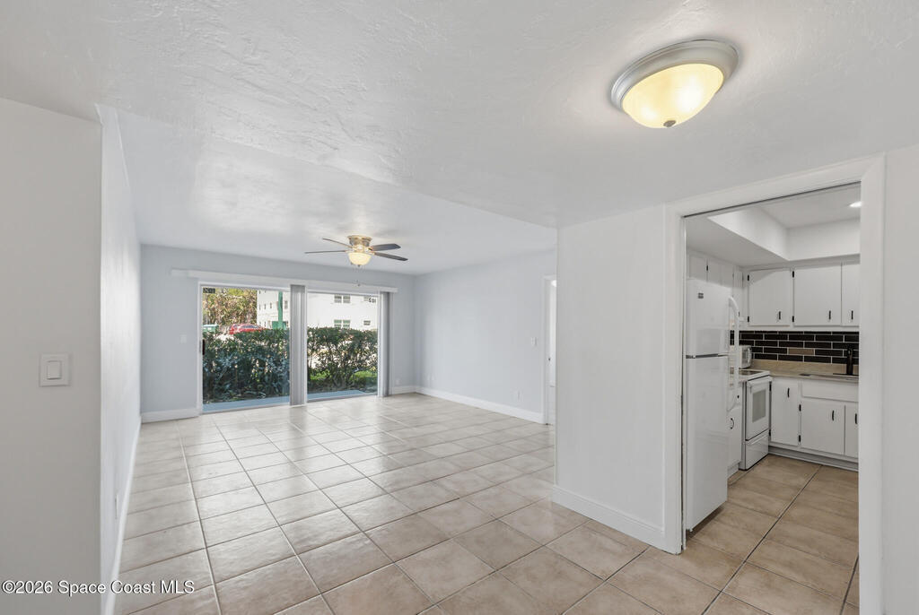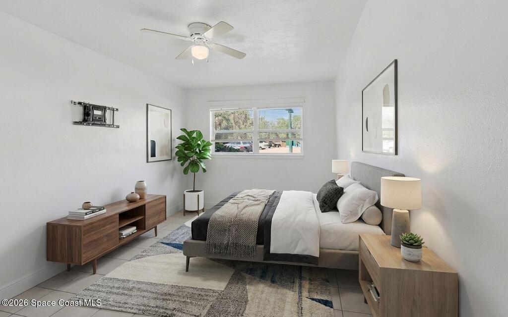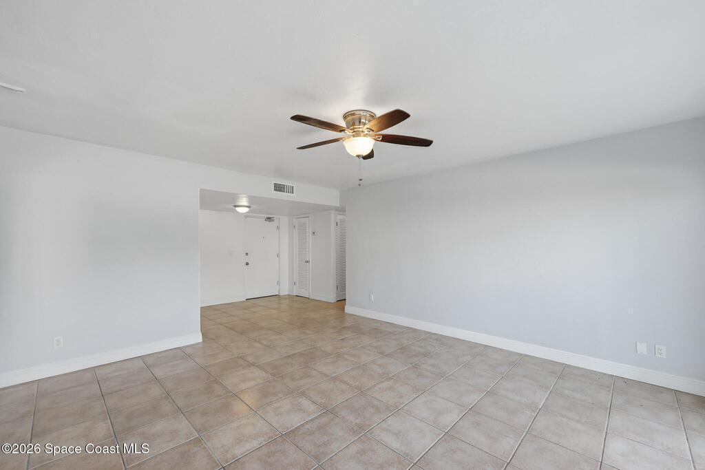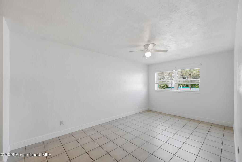 First-floor end-unit condo with 3 bedrooms and 2.5 baths, conveniently located near Port Canaveral, the Cocoa Beach Pier, downtown Cocoa Beach, and SR 528 for easy access.The kitchen is finished with quartz countertops, tiled backsplash, recessed lighting and the bathrooms have been updated with matching quartz and modern fixtures. Fresh interior paint throughout, updated baseboards, lighting, and ceiling fans carry throughout the unit. Additional features include window treatments, closet built-ins and a brand new tankless water heater.North-facing back porch with direct rocket launch views 🚀Monthly rentals permitted. The low HOA includes water, sewer, trash and the community offers a secured lobby, pool, clubhouse with kitchen and meeting space, sauna, and laundry facilities.