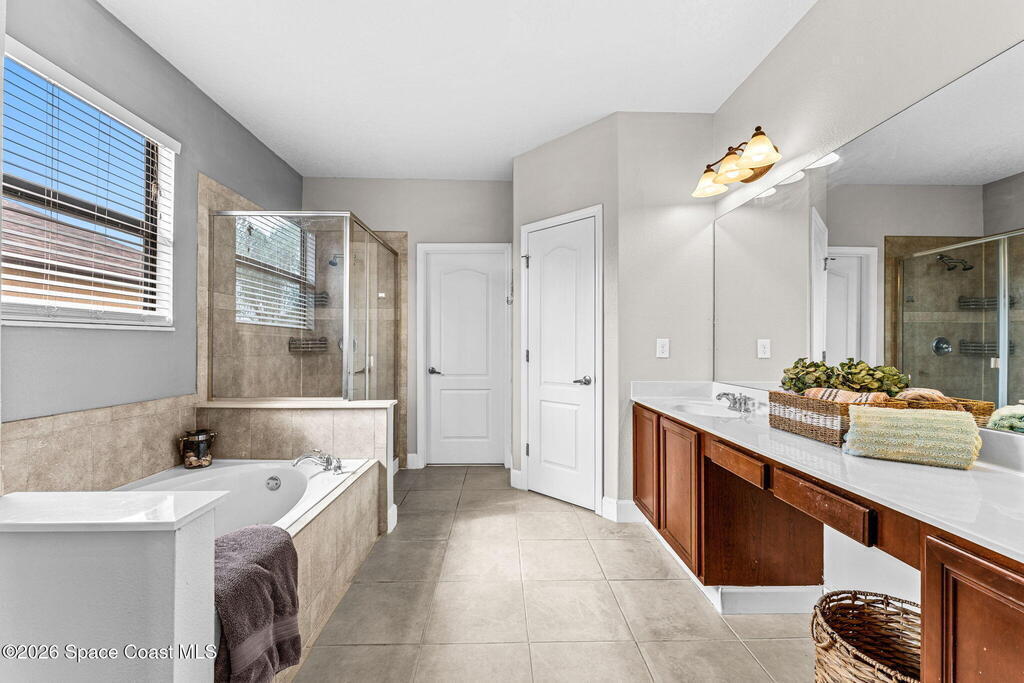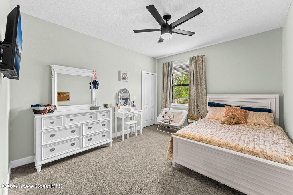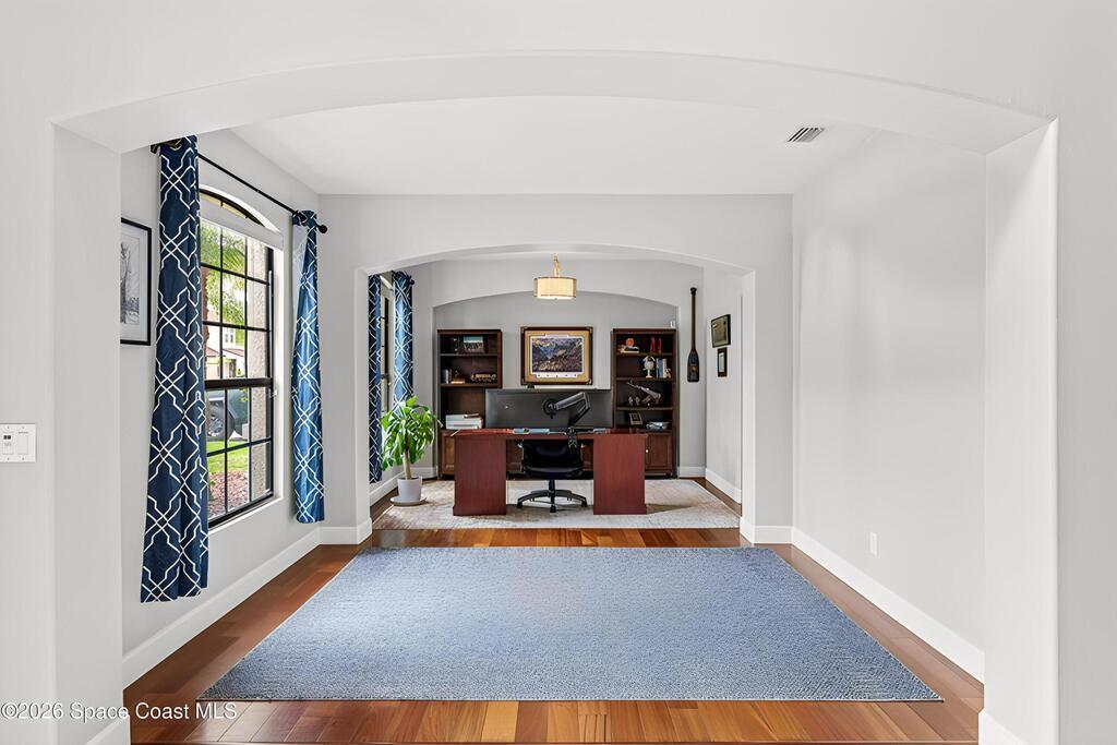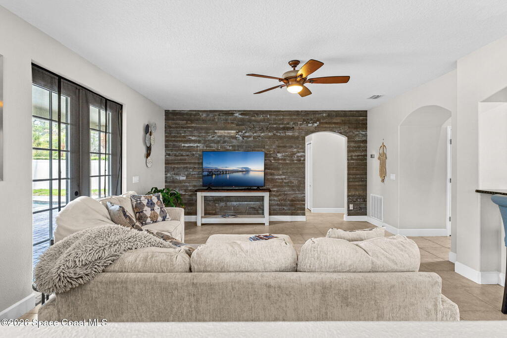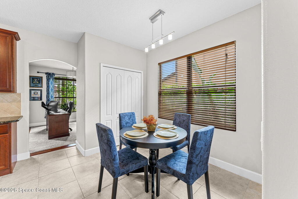 Located in the gated community of Eagle Harbor, this expansive 5-bedroom pool home offers a rare blend of versatility, comfort, and true Florida lifestyle living. With over 3,600 square feet, the thoughtfully designed floor plan adapts effortlessly to the way you live--featuring formal living and dining areas, a dedicated office or flex space, and an open-concept kitchen and family room that seamlessly connects to a sun-filled Florida room currently enjoyed as the main dining space.Upstairs, the home truly shines with a spacious bonus room featuring sliders that open to an impressive 500 sq ft deck--perfect for taking in elevated views of the backyard, enjoying sunset skies, or even catching a rocket launch. A dedicated movie room with high-resolution projector, surround sound, and oversized reclining seating creates the ultimate at-home theater experience.Step outside and you'll find your own private retreat. The fenced backyard showcases a sparkling pool and spa with a built-in