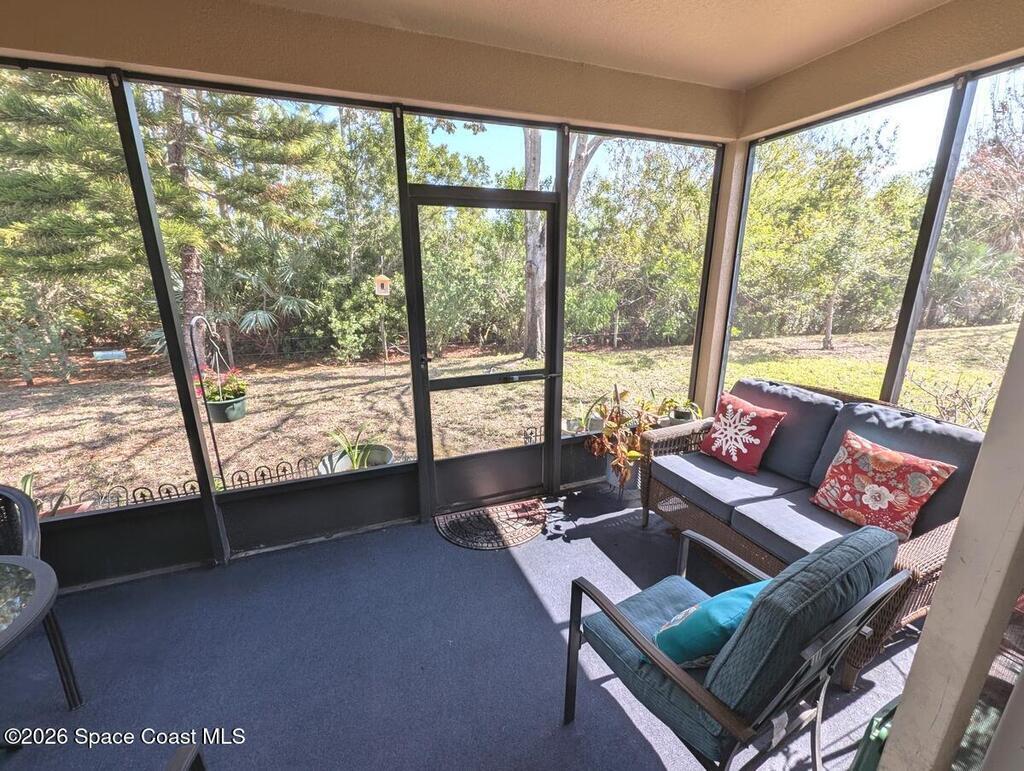 You will absolutely fall in love with the location of this 4 bedroom 2 bath home. The rear screened porch is the perfect place to sit with morning coffee or a glass of wine after a hectic workday and listen to the birds chirping from the preserve area behind your new home. What a great way to start and end the day! The home features 4 bedrooms, 2 baths, vaulted ceilings throughout the living areas. Kitchen is nicely appointed with tall cabinets with crown molding, solid surface countertops and stainless steel appliances. There was an extra pantry added for the chef to store all those kitchen gadgets! Primary bedroom is at the rear of the house, and is quite spacious. The en-suite bathroom has a large vanity with double sinks, separate soaking tub and shower, and a large walk in closet. 3 guest bedroom are generous in size with nice closet space. Roof is less than 2 years old. Located between New Haven and Palm Bay Rd. so it is just minutes to EVERYTHING you could ever want!