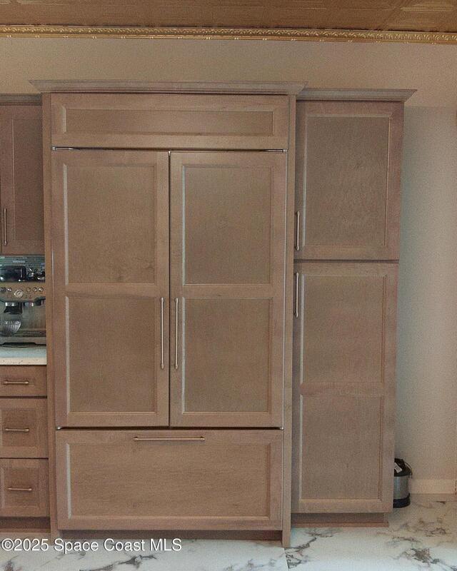 Discover unparalleled coastal elegance in this beautifully renovated, first-level 2-bedroom, 2.5-bath condominium nestled within the prestigious, gated Aquarina Beach & Country Club - Melbourne Beach's only ocean-to-river luxury community. Designed to feel like a private single-family home, this rare gem offers direct access and parking to pristine Atlantic beaches, an 18-hole championship golf course winding through the Archie Carr National Wildlife Refuge, tennis courts, a full-service restaurant, private fishing dock, boat launch, and miles of serene Indian River Lagoon waterfront.Step inside to a complete, top-to-bottom renovation featuring a show-stopping gourmet kitchen unlike any other: Sub-Zero refrigerator and wine cooler, Bosch French Door oven, steamer oven, induction cooktop, microwave, and a large deep stainless steel sink with premium attachments - perfect for culinary enthusiasts or effortless entertaining.The open living spaces are bright and inviting, highlighted by