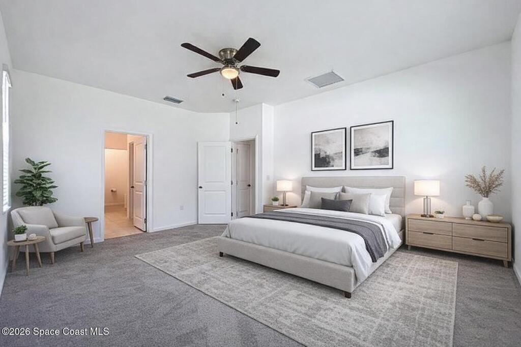 OPPORTUNITY AWAITS!! this gorgeous concrete block home BUILT 2023 features 4 bedrooms, 3 full bathrooms, and a 3 car garage. Floor plan is roomy and open with over 2400 living sqft. 11ft ceilings and lots of natural light. Large gourmet kitchen offers 13ft center island, custom cabinets, viatera quartz countertops, walk in pantry, induction stove and convection oven. Master suite boasts large walk in closet, double sinks and an over-sized shower. All guest bedrooms are spacious with walk in closets. BRAND NEW VINYL FENCE BEING INSTALLED, PERFECT FOR PRIVACY!! The backyard also features a covered patio and offers ample space to add a pool, providing the perfect opportunity to create your own private outdoor retreat. Neighborhood is conveniently located, 10 Min to SpaceX and Blue Origin, 45 min drive to Orlando airport, just minutes to beaches and Port Canaveral. This property is also for rent.