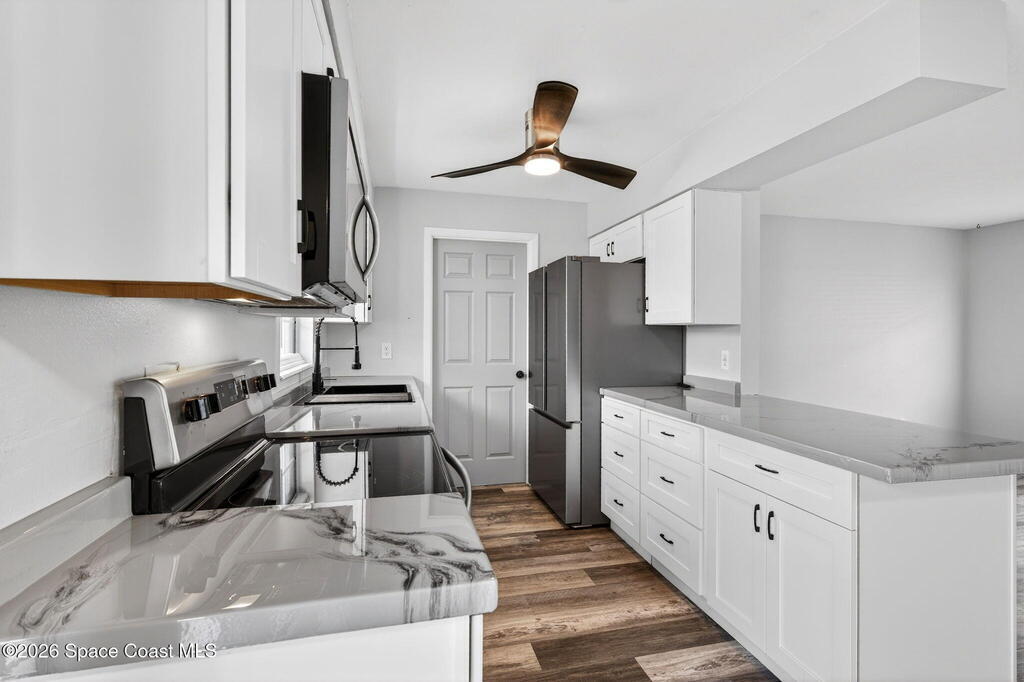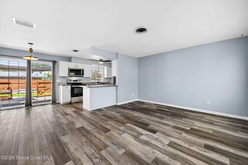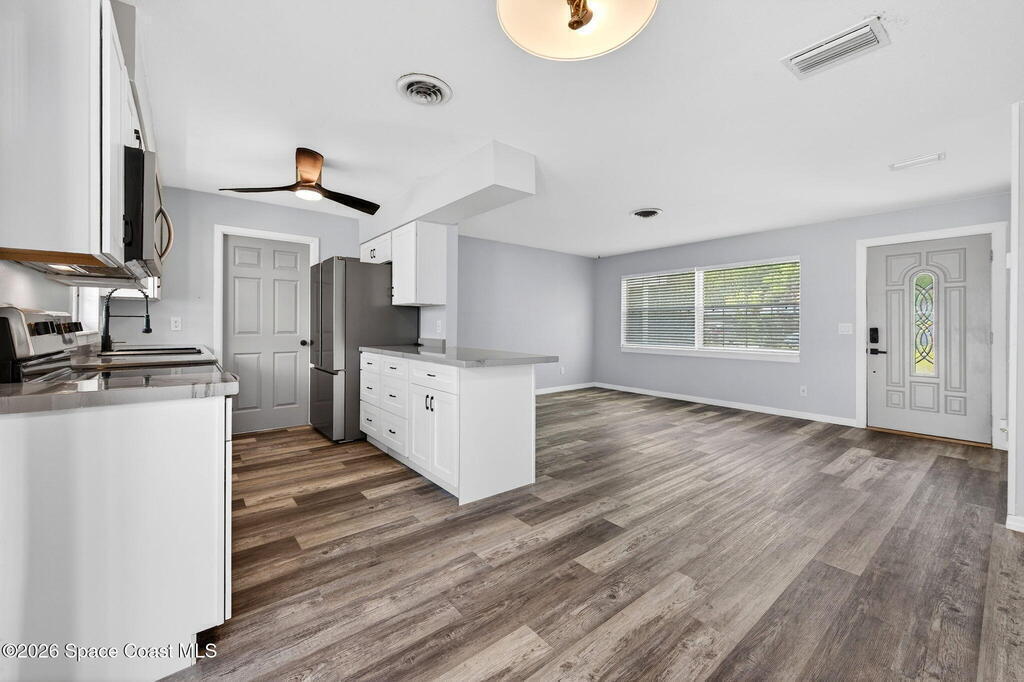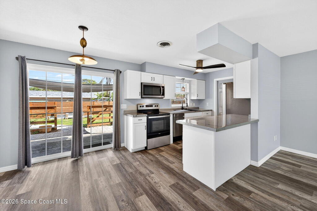 Welcome to this beautifully updated 3-bedroom, 1.5-bath home offering comfort, efficiency, and move-in-ready convenience. The big ticket items have been already been done! Roof (2023) HVAC (2023) Water Heater (2023) PVC Piping(2023) Vinyl flooring flows throughout, creating a clean, modern feel. The upgraded kitchen features stainless steel appliances and ample space for cooking and entertaining. An indoor laundry room with added storage provides everyday functionality. Bathrooms have been tastefully updated, including a modern shower. Major improvements also include-new ductwork, and attic spray insulation for enhanced energy efficiency. Enjoy the covered fenced-in patio as your private oasis for relaxing after a long day. New fencing encompasses the property and a newer shed for storage. Fire pit --perfect for relaxing or entertaining. A fantastic opportunity for buyers seeking a fully updated home with great indoor and outdoor living! Great proximity to Blue Origin, Space X !