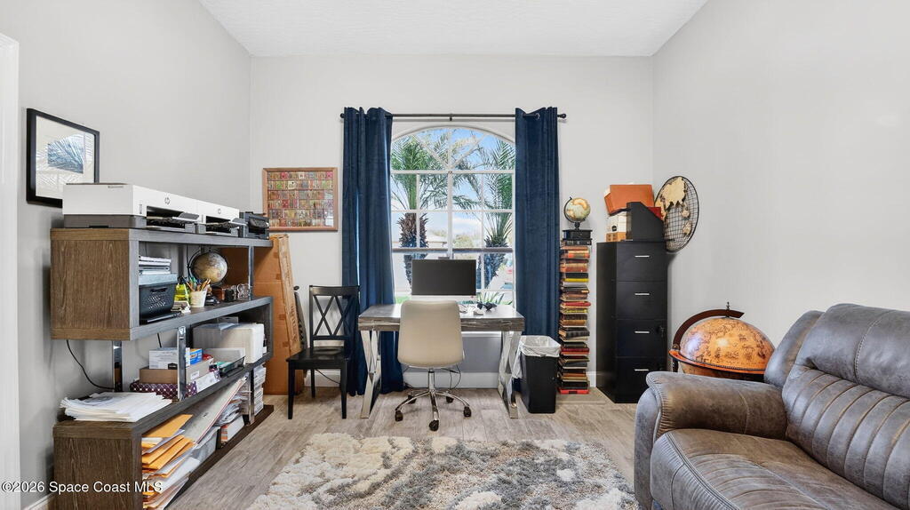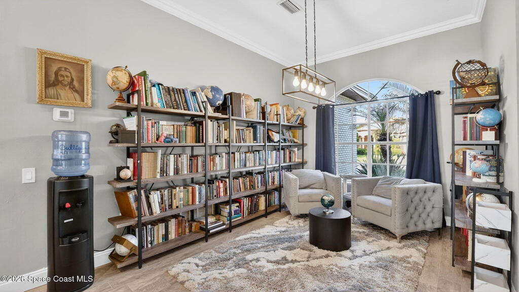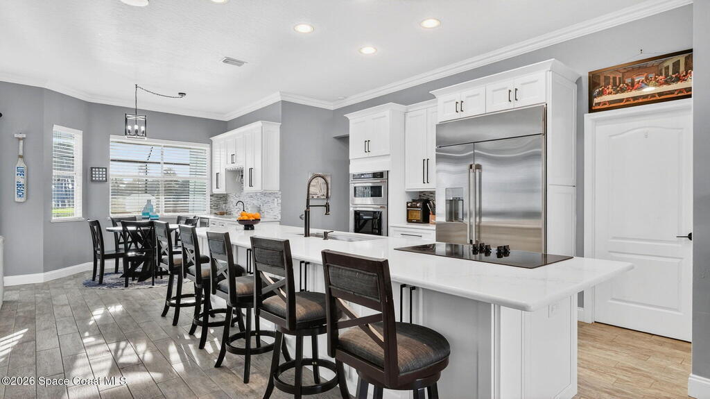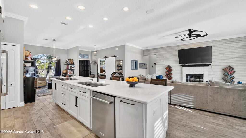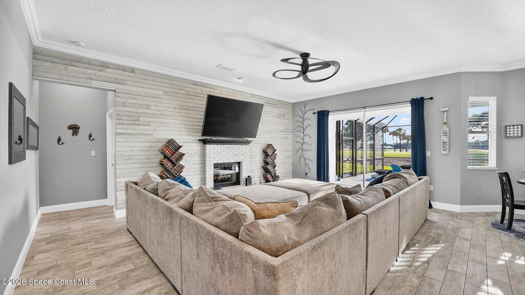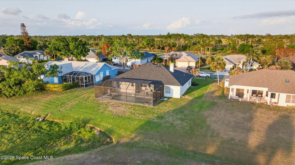**Merritt Island Grandeur Awaits: Your Stunning 4-Bedroom (with Bonus/Den/Office) Salt-Water Pool Home Oasis is Here; Unrivaled Lake and Golf Course/ Sunset Views** Step into your meticulously and prestigiously renovated sanctuary, a remarkable 4-bedroom, 2-bathroom home, that epitomizes luxury and comfort. Nestled in the serene Savannahs neighborhood, this indoor/outdoor paradise features a custom saltwater pool, accompanied by a heated Therapy Spa, all enhanced with remote-controlled Lighting and enchanting Fountain features. Breathtaking sunsets await you from the spacious screened-in area, complemented by a well-equipped outdoor kitchen perfect for entertaining or peaceful relaxation.Inside, you're greeted by a Move-In-Ready, open floor plan, filled with natural light and a state-of-the-art kitchen, which boasts of granite countertops, a massive island perfect for cooking and company, high-end appliances, including a 48-inch Cafe refrigerator.