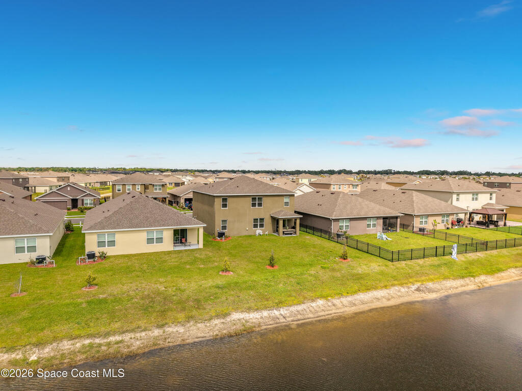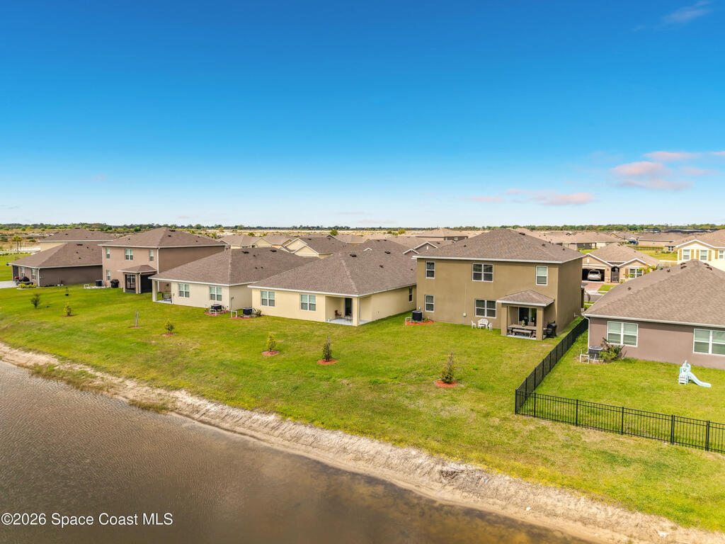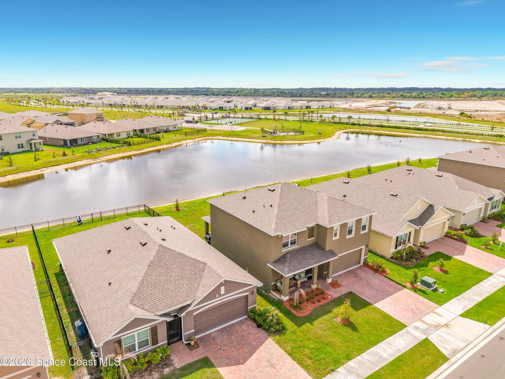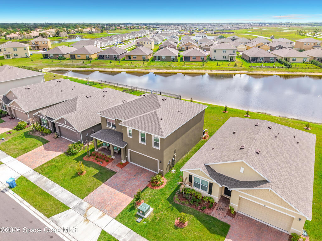 Welcome to 905 Dugan Circle SE in Palm Bay, located in the up-and-coming NEW Cypress Bay West community. Why wait to build when you can move right into this constructed 2024 2-STORY BLOCK WATERFRONT HOME offering an impressive 3,088 square feet under roof! The Hayden floorplan features 5 bedrooms, 3 full bathrooms, an additional family room, and a versatile second-story loft, perfect for a home office, media room, or play space. Designed for both comfort and functionality, the open-concept layout provides seamless flow between the living, dining, and kitchen areas, making it ideal for everyday living and entertaining. The kitchen provides granite counters, stainless steel appliances, a walk-in pantry and a breakfast bar perfect for busy mornings. Downstairs there is one bedroom and a full bathroom which offers space for guests. The second floor offers 4 bedrooms including a spacious primary retreat with double walk-in closets and a modern bathroom including a large walk-in shower.