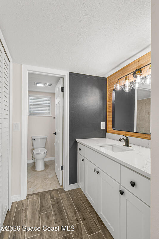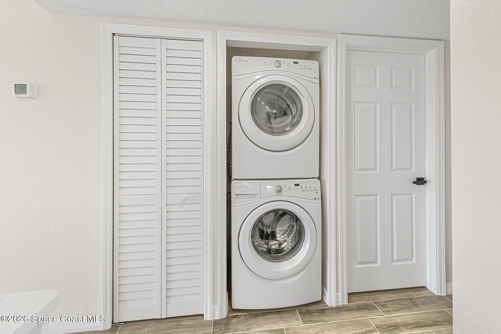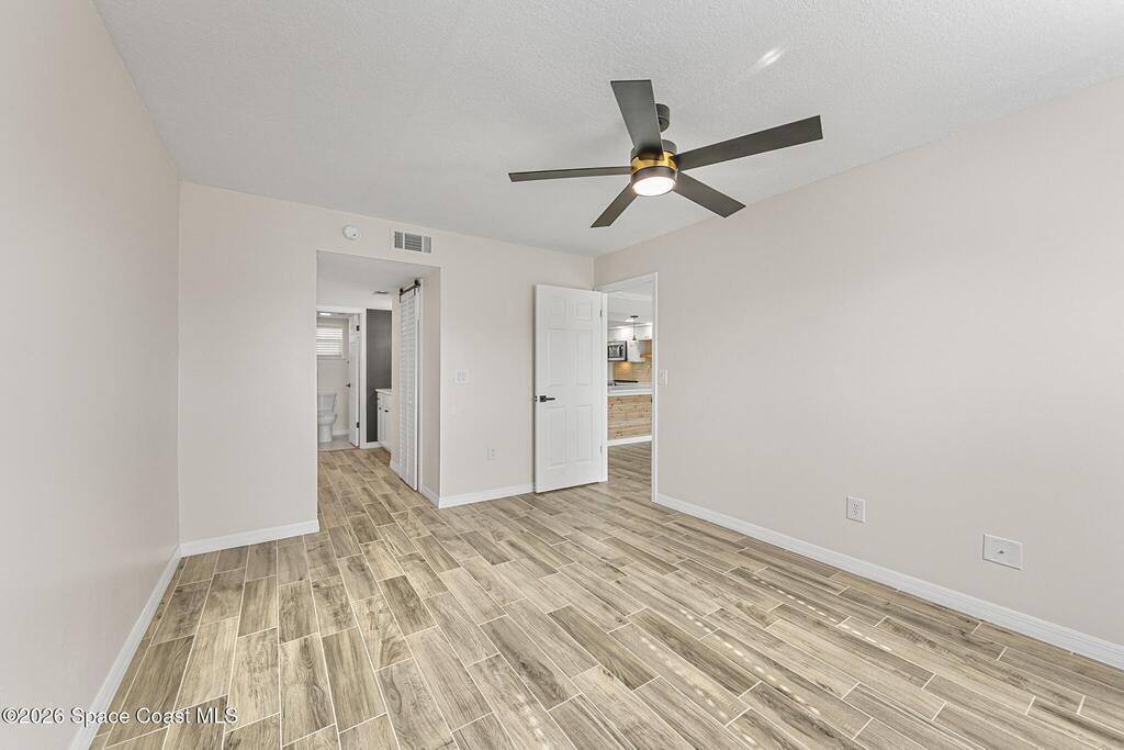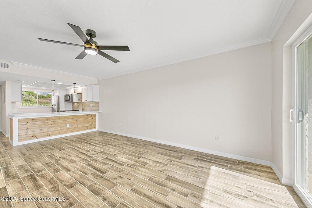 Come experience effortless living in this beautifully renovated condo showcasing modern organic design and contemporary luxe finishes. Every detail has been updated for a seamless, move-in-ready experience, including new windows, sliding glass door, and a BRAND NEW HVAC. The open, light-filled layout features wood-look tile flooring throughout, smooth ceilings (no popcorn), and remote-controlled ceiling fans. The kitchen shines with a quartz peninsula, all-new stainless steel appliances, soft-close cabinetry, and a WiFi-enabled range. The spacious bedroom offers two large closets, including a walk-in. Enjoy sunset views and breezes from the top-floor screened balcony. Elevator access, a community pool, clubhouse, assigned parking, a park-like dog walking area, and a private kayak launch providing direct access to the Eau Gallie River, Ballard Park, and the Indian River complete this refined, low-maintenance property. HOA includes water and internet/cable. No rentals; limit 1 dog or cat