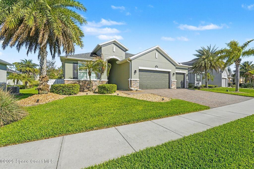 Assumable VA loan at an incredible 2.25% interest rate. A rare opportunity in today's market you don't want to miss.Beautifully maintained 3-bedroom, 3 full bath, 2 half bath home with a versatile flex room and a 3-car garage, featuring a stunning screened-in pool and spa perfect for Florida living. This spacious open floor plan offers tile throughout the main areas, high ceilings, and a bright, inviting living space ideal for entertaining. The gourmet kitchen showcases granite countertops, ample cabinetry, and a large breakfast bar overlooking the family room. The primary suite is a true retreat with tray ceilings, a spa-like bath, soaking tub, and walk-in shower. The flex room is perfect for a home office, gym, or guest space. Step outside to your private backyard oasis with a covered lanai, summer kitchen area, and resort-style pool, all fully screened for year-round enjoyment. Conveniently located, this home blends comfort, functionality, and the Florida lifestyle.