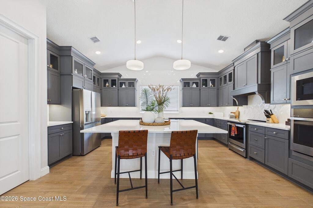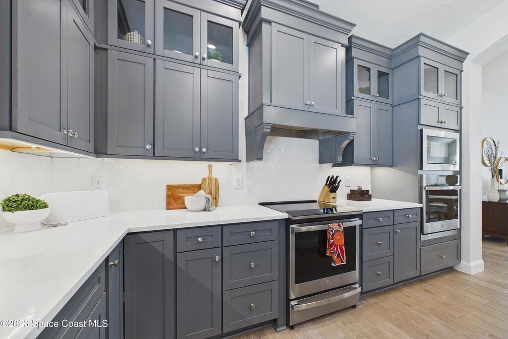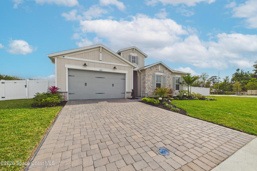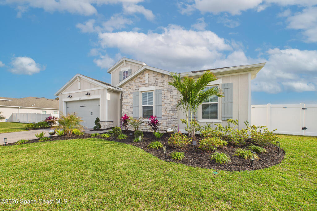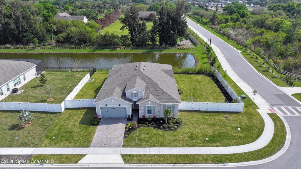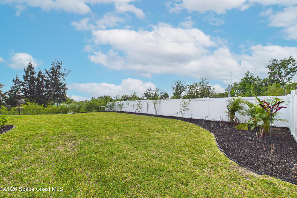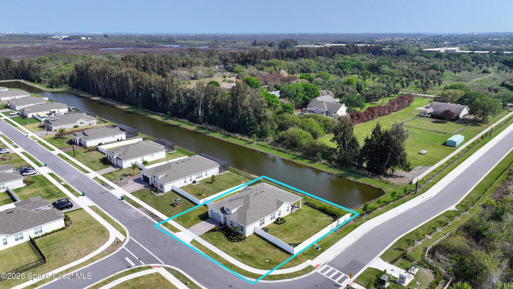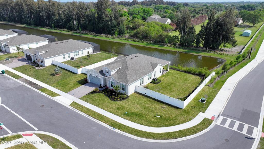 Tucked away in the newer, intimate community of Armen Groves, this corner-lot residence offers privacy, nature and exceptional convenience in the heart of Merritt Island. With 4 bedrooms, 2.5 baths and TWO Bonus Rooms the possibilities are endless for home office(s) media rooms, playrooms or relaxing spaces. The state of the art Kitchen is a show-stopper with GE Profile SS appliances, plentiful storage with a plethora of shaker cabinets and walk in pantry, The vaulted 12-foot ceilings have a unique design and flowing floorplan. Primary suite is a private sanctuary with luxury finishes in both the bedroom and bath. This home also features luxury tile throughout, 2+car garage with epoxy flooring, and a fully fenced in yard. On water, the large wraparound yard has growing bamboo and creates a lush canvas for a future pool or custom outdoor oasis. Minutes from NASA, SpaceX, Port Canaveral, beaches, canal-front dining, as well as quick freeway access to Orlando and airport. Move-in ready!