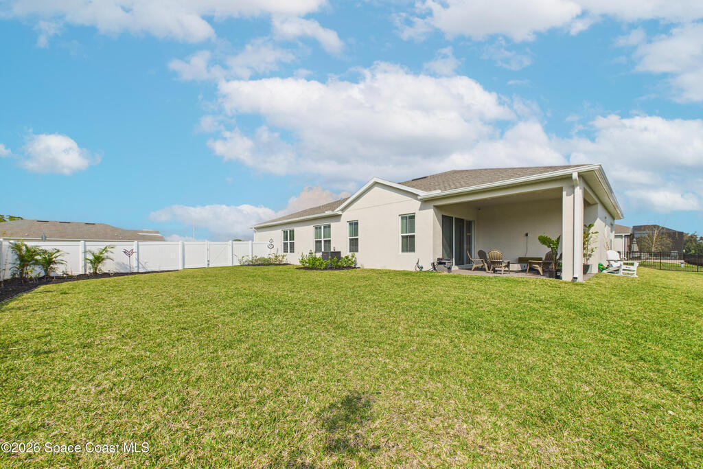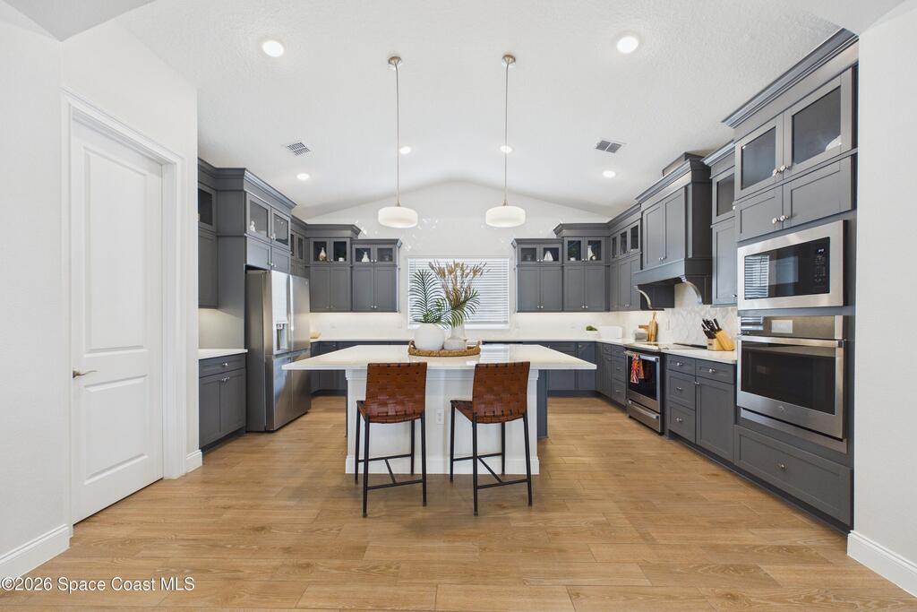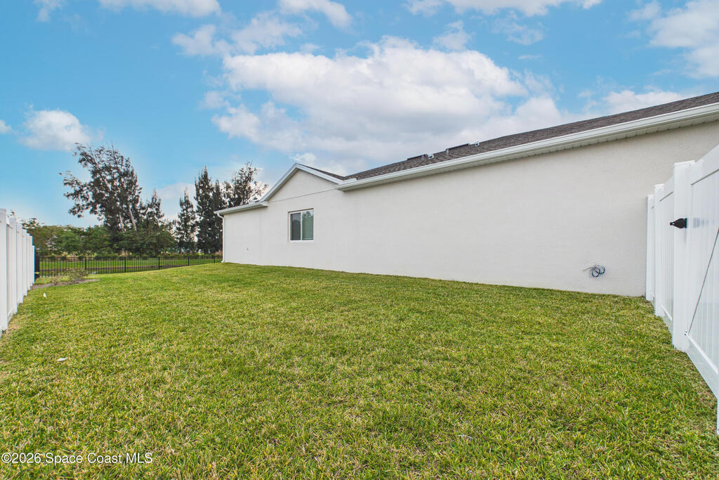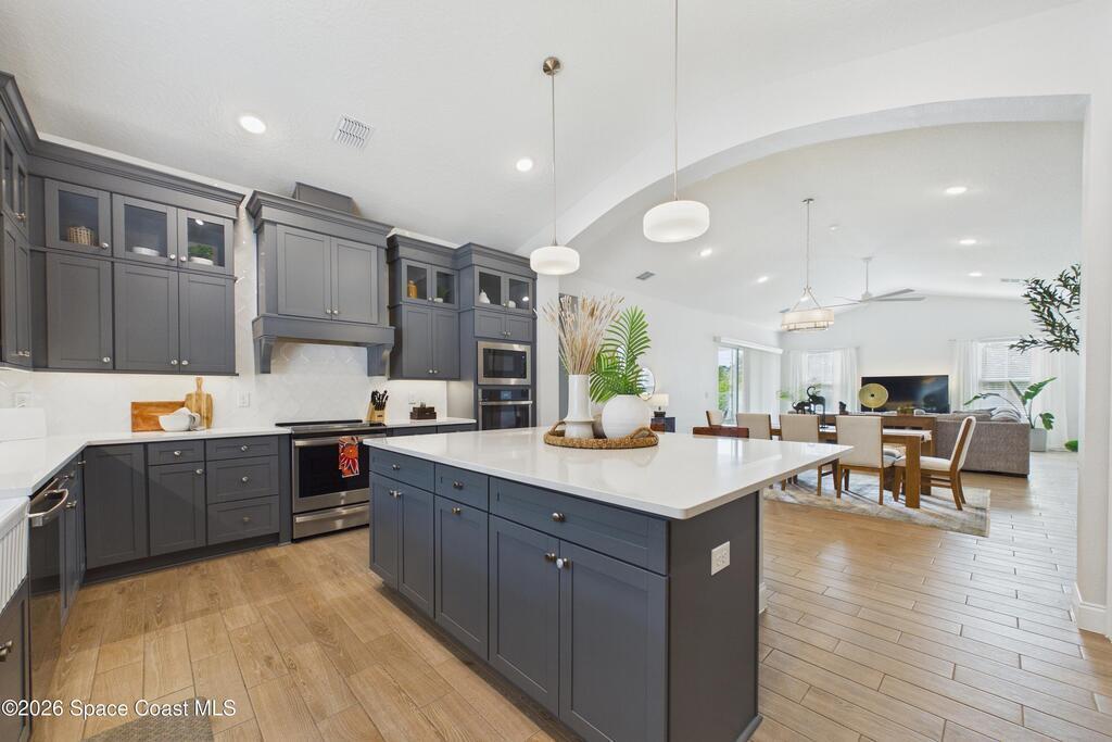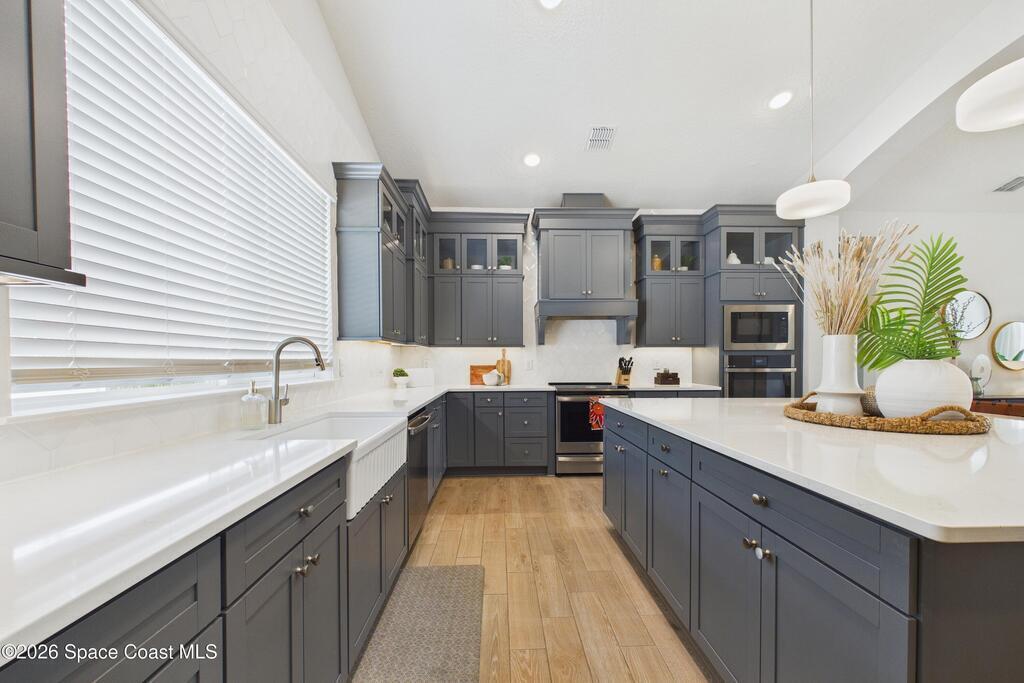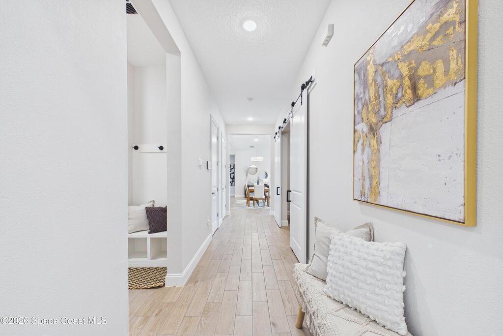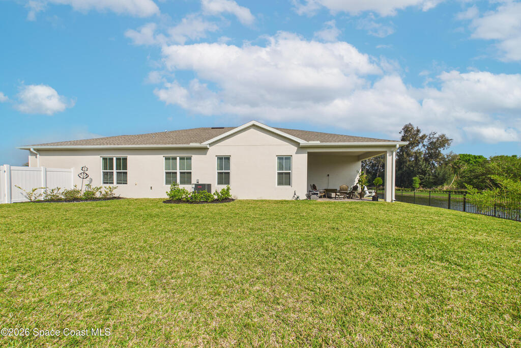 Tucked away in the newer, intimate community of Armen Groves, this corner-lot residence offers privacy, nature and exceptional convenience in the heart of Merritt Island. With 4 bedrooms, 2.5 baths and TWO Bonus Rooms the possibilities are endless for home office(s) media rooms, playrooms or relaxing spaces. The state of the art Kitchen is a show-stopper with GE Profile SS appliances, plentiful storage with a plethora of shaker cabinets and walk in pantry, The vaulted 12-foot ceilings have a unique design and flowing floorplan. Primary suite is a private sanctuary with luxury finishes in both the bedroom and bath. This home also features luxury tile throughout, 2+car garage with epoxy flooring, and a fully fenced in yard. On water, the large wraparound yard has growing bamboo and creates a lush canvas for a future pool or custom outdoor oasis. Minutes from NASA, SpaceX, Port Canaveral, beaches, canal-front dining, as well as quick freeway access to Orlando and airport. Move-in ready!