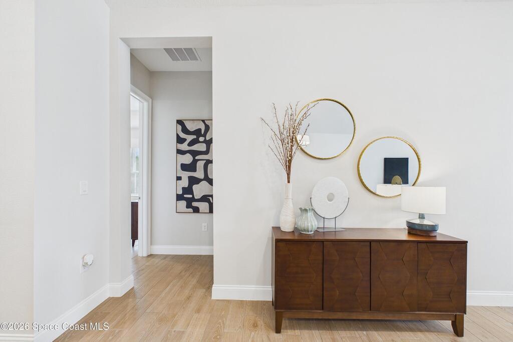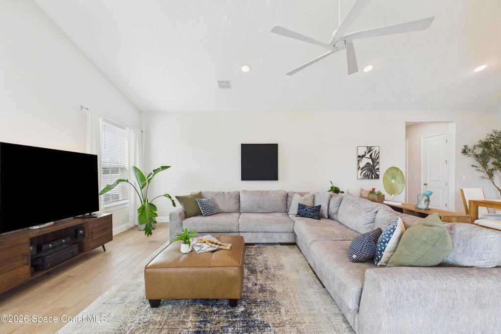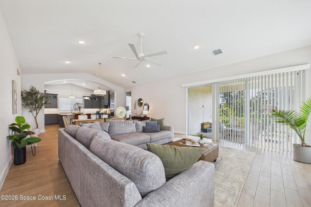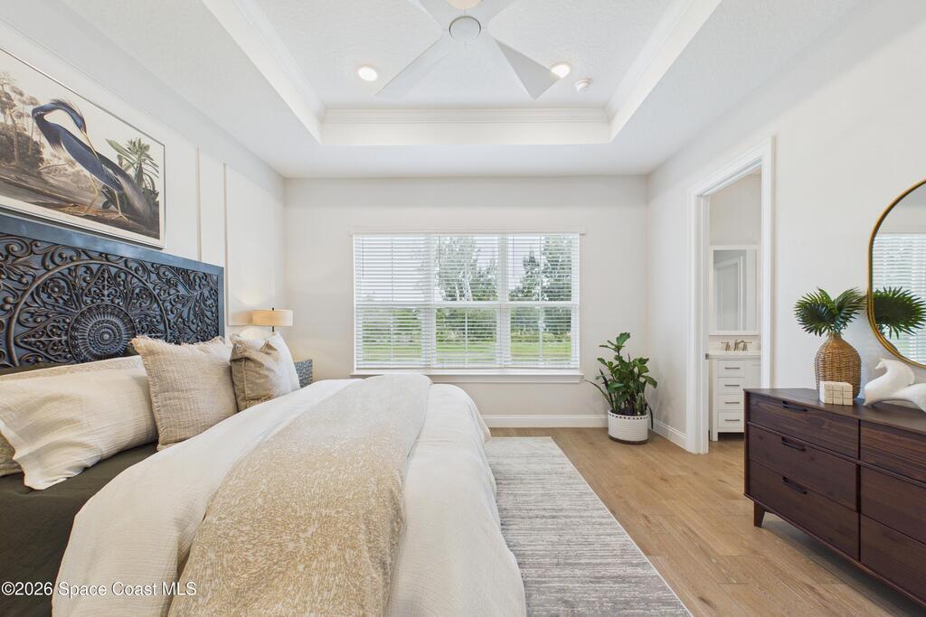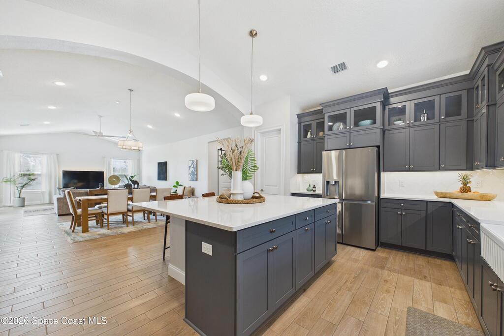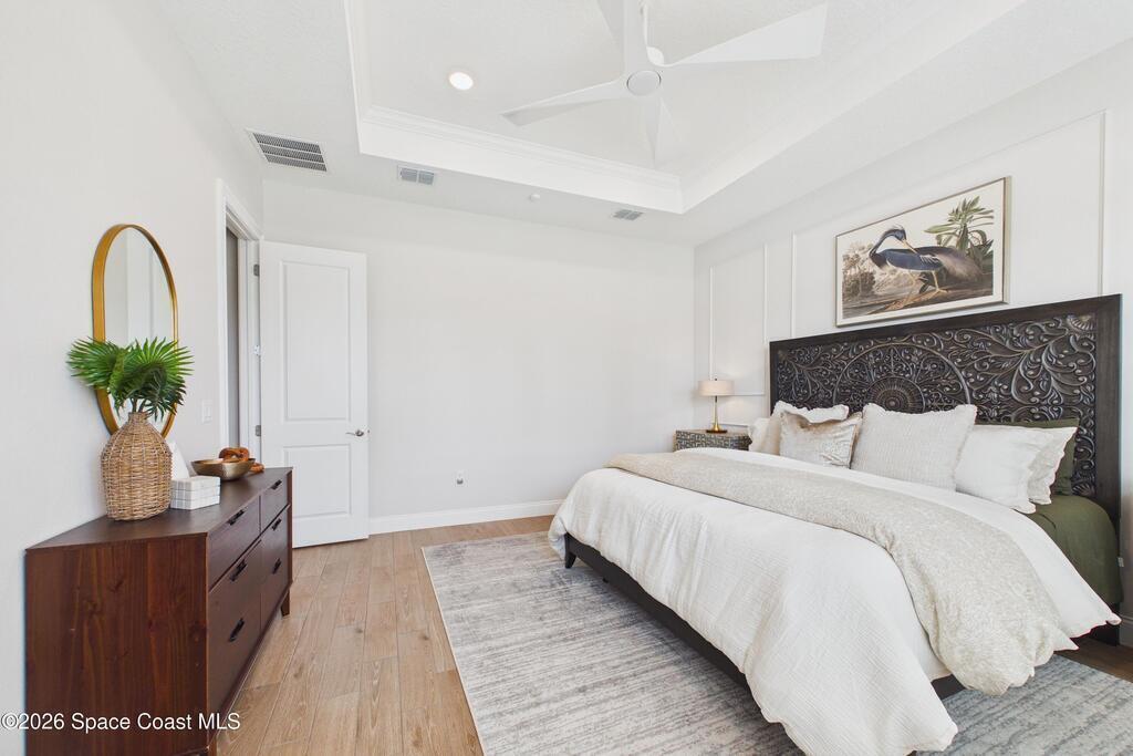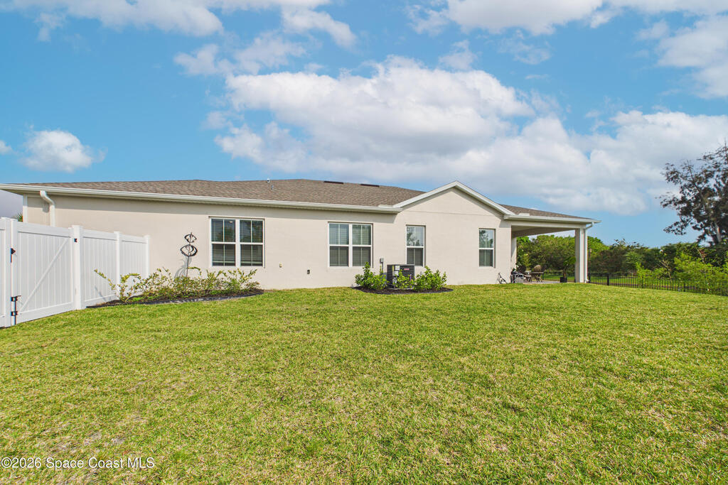 Tucked away in the newer, intimate community of Armen Groves, this corner-lot residence offers privacy, nature and exceptional convenience in the heart of Merritt Island. With 4 bedrooms, 2.5 baths and TWO Bonus Rooms the possibilities are endless for home office(s) media rooms, playrooms or relaxing spaces. The state of the art Kitchen is a show-stopper with GE Profile SS appliances, plentiful storage with a plethora of shaker cabinets and walk in pantry, The vaulted 12-foot ceilings have a unique design and flowing floorplan. Primary suite is a private sanctuary with luxury finishes in both the bedroom and bath. This home also features luxury tile throughout, 2+car garage with epoxy flooring, and a fully fenced in yard. On water, the large wraparound yard has growing bamboo and creates a lush canvas for a future pool or custom outdoor oasis. Minutes from NASA, SpaceX, Port Canaveral, beaches, canal-front dining, as well as quick freeway access to Orlando and airport. Move-in ready!