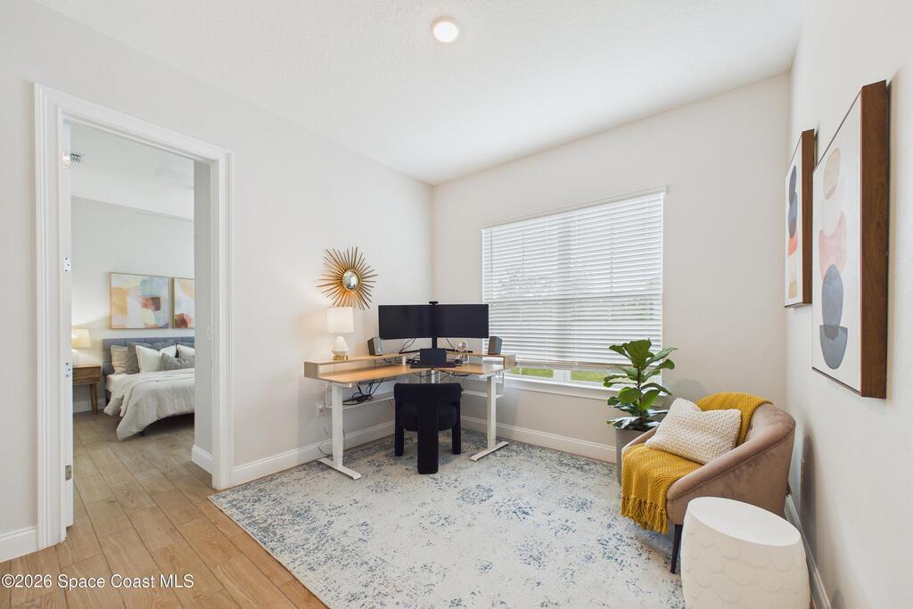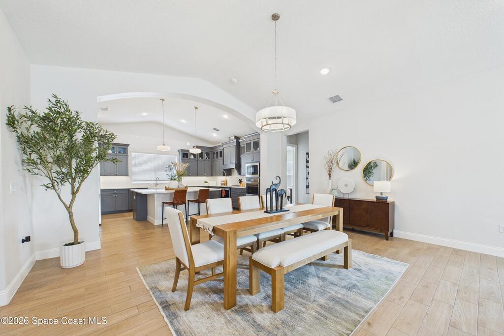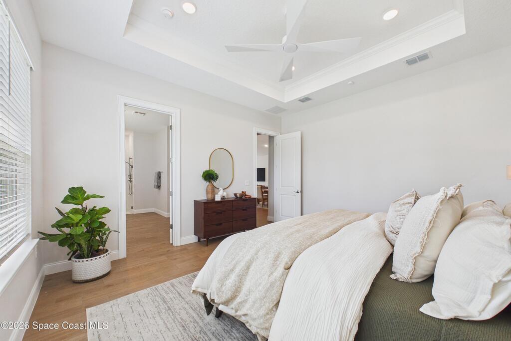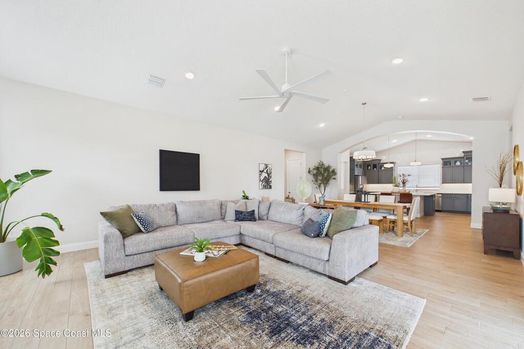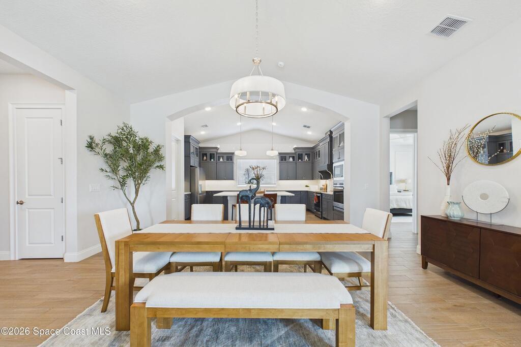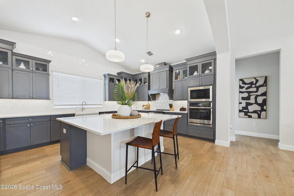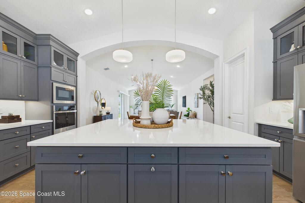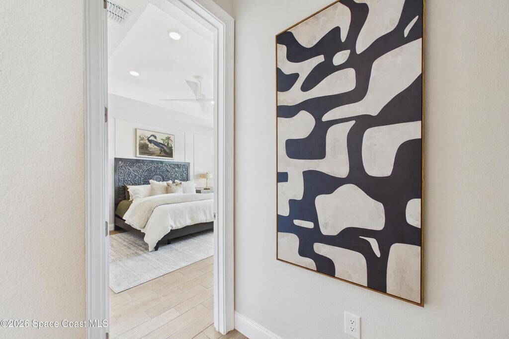 Tucked away in the newer, intimate community of Armen Groves, this corner-lot residence offers privacy, nature and exceptional convenience in the heart of Merritt Island. With 4 bedrooms, 2.5 baths and TWO Bonus Rooms the possibilities are endless for home office(s) media rooms, playrooms or relaxing spaces. The state of the art Kitchen is a show-stopper with GE Profile SS appliances, plentiful storage with a plethora of shaker cabinets and walk in pantry, The vaulted 12-foot ceilings have a unique design and flowing floorplan. Primary suite is a private sanctuary with luxury finishes in both the bedroom and bath. This home also features luxury tile throughout, 2+car garage with epoxy flooring, and a fully fenced in yard. On water, the large wraparound yard has growing bamboo and creates a lush canvas for a future pool or custom outdoor oasis. Minutes from NASA, SpaceX, Port Canaveral, beaches, canal-front dining, as well as quick freeway access to Orlando and airport. Move-in ready!