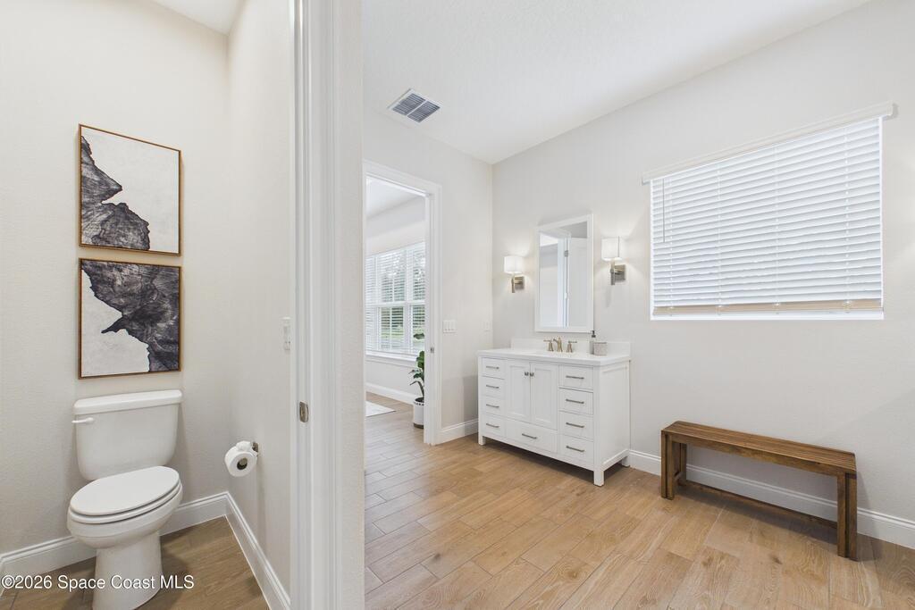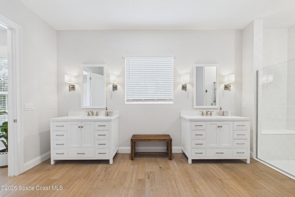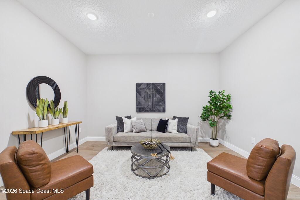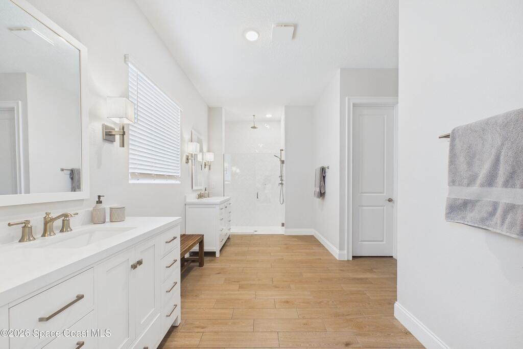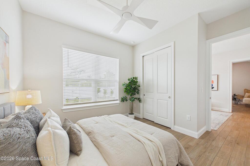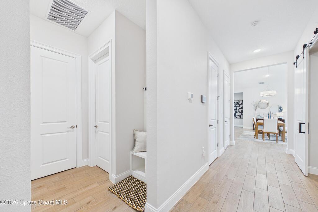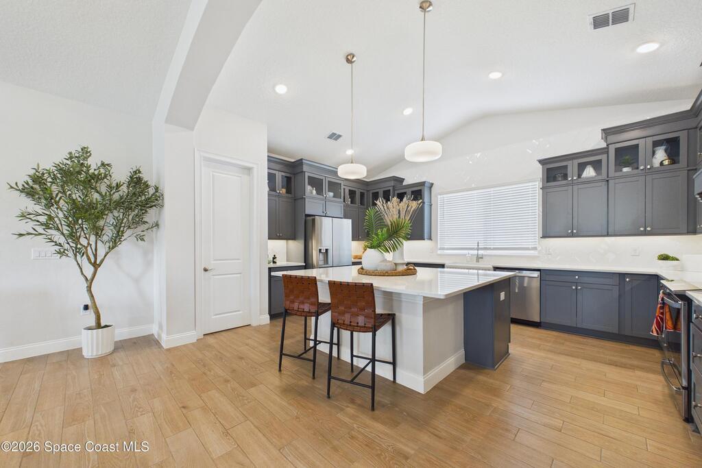 Tucked away in the newer, intimate community of Armen Groves, this corner-lot residence offers privacy, nature and exceptional convenience in the heart of Merritt Island. With 4 bedrooms, 2.5 baths and TWO Bonus Rooms the possibilities are endless for home office(s) media rooms, playrooms or relaxing spaces. The state of the art Kitchen is a show-stopper with GE Profile SS appliances, plentiful storage with a plethora of shaker cabinets and walk in pantry, The vaulted 12-foot ceilings have a unique design and flowing floorplan. Primary suite is a private sanctuary with luxury finishes in both the bedroom and bath. This home also features luxury tile throughout, 2+car garage with epoxy flooring, and a fully fenced in yard. On water, the large wraparound yard has growing bamboo and creates a lush canvas for a future pool or custom outdoor oasis. Minutes from NASA, SpaceX, Port Canaveral, beaches, canal-front dining, as well as quick freeway access to Orlando and airport. Move-in ready!