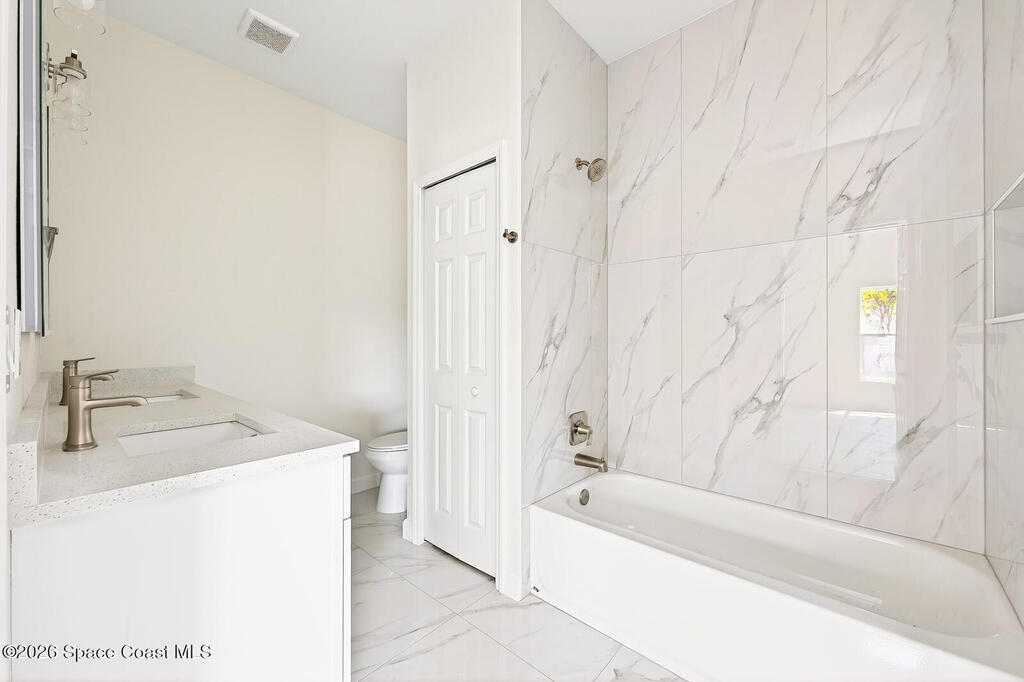 Completed in 2026 and never lived in, this BRAND NEW CONSTRUCTION home in the Read & Allen subdivision of Titusville offers the rare opportunity to own a fresh, move-in ready property with transferable manufacturer warranties and NO HOA restrictions! Thoughtfully designed with modern finishes and an easy, OPEN CONCEPT layout, this home delivers the clean, contemporary style you have been searching for. LUXURY VINYL PLANK FLOORING runs throughout, creating a seamless look and easy maintenance. The open concept main living area flows effortlessly into the kitchen, making everyday living and entertaining feel natural and comfortable. The kitchen showcases an on-trend design with QUARTZ COUNTERTOPS, stainless steel appliances (to be installed), ample cabinet and counter space, and a center ISLAND with bar seating, all finished in a fresh, modern color palette. Natural light fills the PRIMARY SUITE, creating a bright and relaxing retreat. The space features a WALK-IN CLOSET