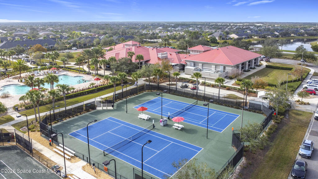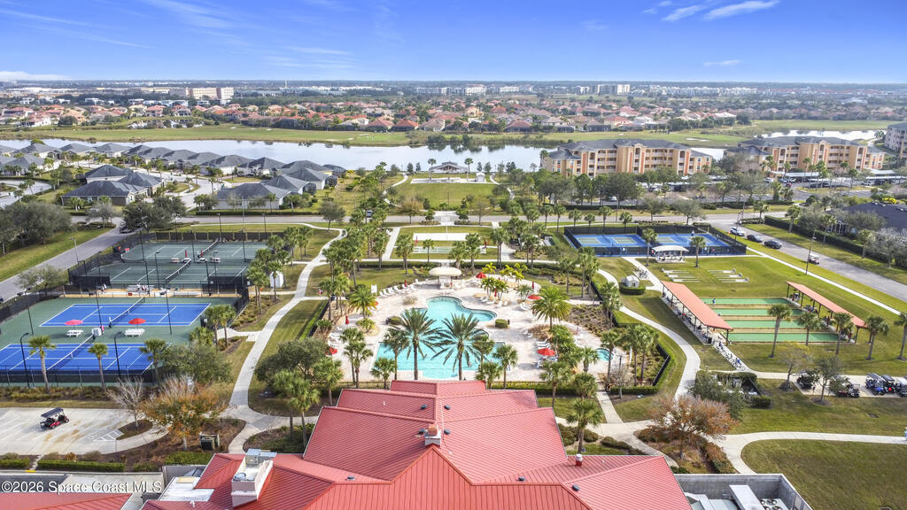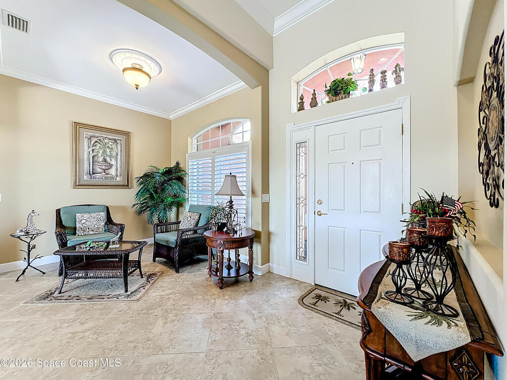 Welcome to resort-style living in the highly desirable 55+ active adult gated community of Heritage Isle in the heart of Viera! This beautifully maintained home offers the perfect blend of comfort, elegance, and scenic surroundings. Situated on a peaceful waterfront lot with stunning golf course views, enjoy breathtaking afternoon sunsets right from your own backyard oasis. Recent updates add even more value and peace of mind, including a new HVAC system (2025), luxury laminate flooring in the bedrooms (2025), and a garage epoxy-coated floor (2024). Inside, you'll find soaring ceilings and an abundance of natural light flowing throughout the open-concept layout. The spacious kitchen features granite countertops, solid wood cabinetry, and overlooks the main living areas, ideal for both everyday living and entertaining. Designed with a desirable split floor plan, this home offers 4 bedrooms and 3 full bathrooms, providing privacy and flexibility. The common area includes a large living
