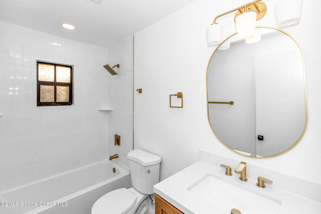 A beautifully renovated home with designer finishes and an oversized lot is now available on Florida's iconic Space Coast. This 3 bedroom, 2 bath property has been fully updated from top to bottom, offering a perfect blend of modern style, functionality, and long-term value. Step inside to a bright open layout filled with natural light and a open airy living space. Brand new flooring flows throughout the home leading into a stunning kitchen featuring white oak cabinetry with soft-close hinges, elegant Calacatta quartz countertops and brushed gold accents that create a clean upscale look. The open-concept design makes the home ideal for both everyday living and entertaining. Both bathrooms have been fully renovated with a modern yet practical design providing a fresh move-in ready feel throughout the home. The home is situated on .24 acre that opens the opportunity to expand, create an outdoor oasis or simply enjoy extra space and privacy. Don't miss out! Schedule a showing today!