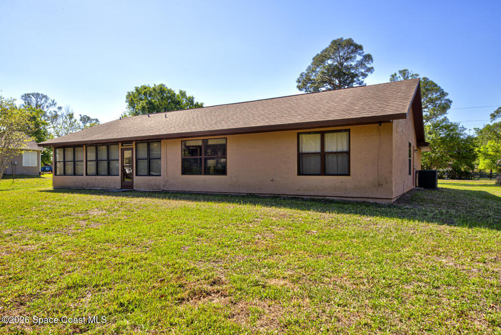 Well Maintained, Custom Built, Original Owners, 3 Bedroom, 2 Bath ,2 Car Garage, 1752 sqft under air (to include enclosed porch), Split Plan Home on 1 acre located in Canaveral Groves. This home offers cathedral ceilings, tile flooring through out, eat in kitchen with breakfast nook, spacious living room, formal dining room, large primary suite offers walk-in closet & walk-in shower, guest bathroom has bath tub/shower combo, enclosed porch under air (10'x28'). Roof was replaced in 2019, HVAC system replaced in 2020, Septic system recently pumped (March 2026). There is NO HOA and this property is not in a flood zone. There is plenty of room to park a motorhome, trailer, RV, boat and more. This home is worth taking a look at...