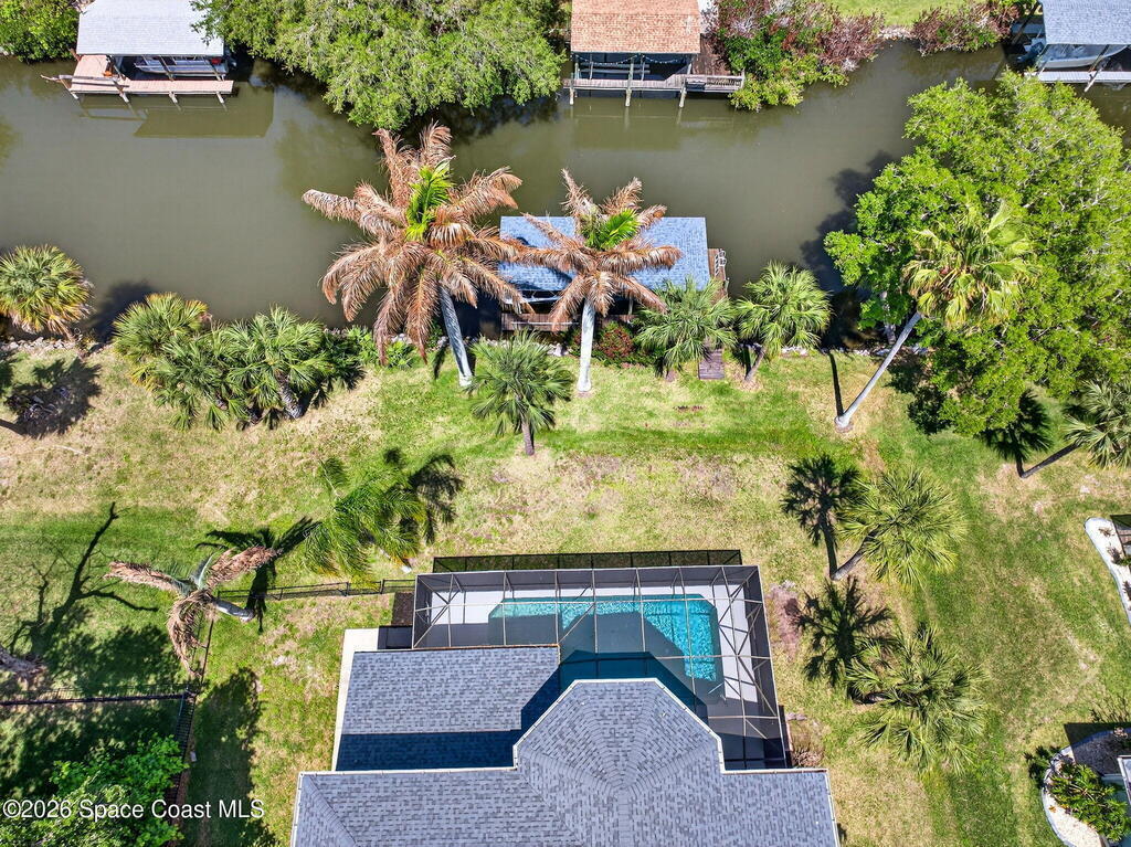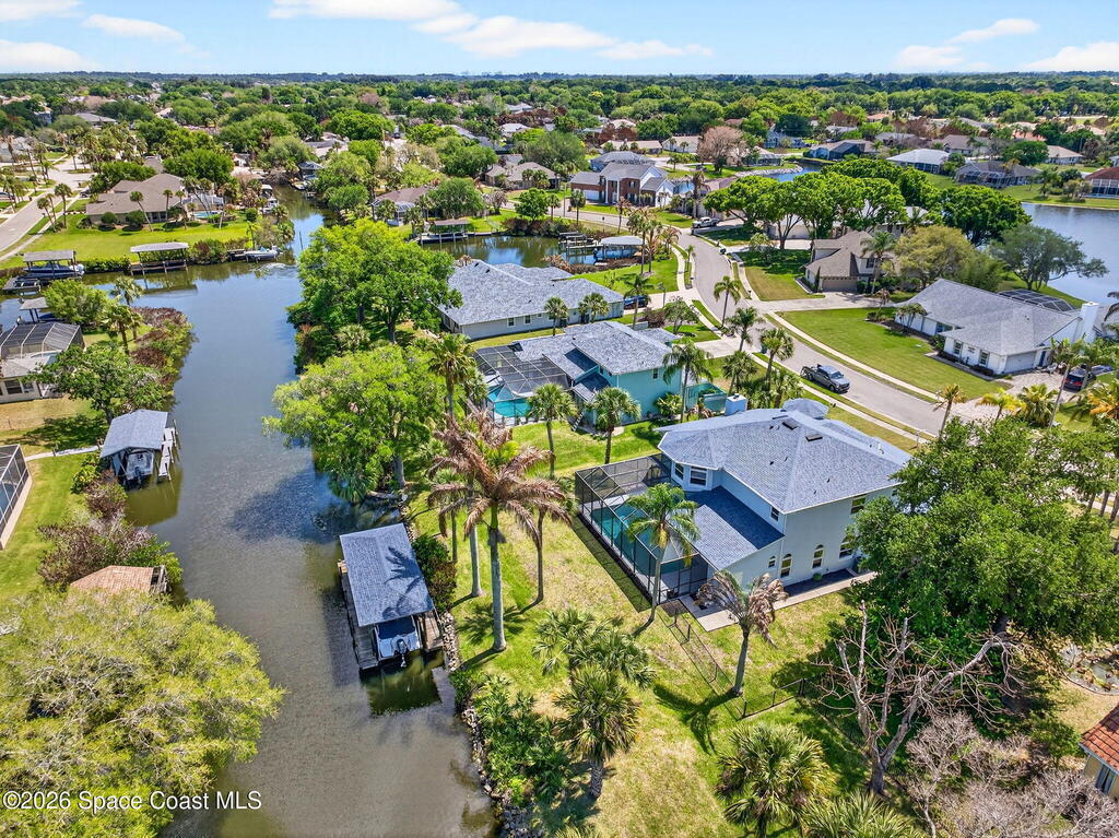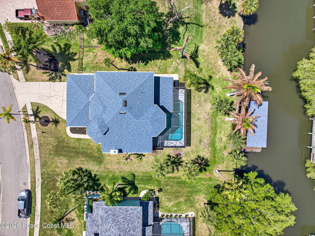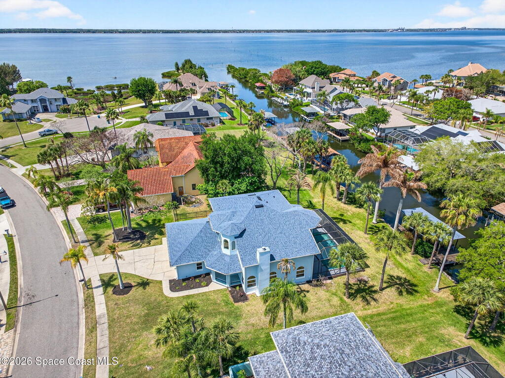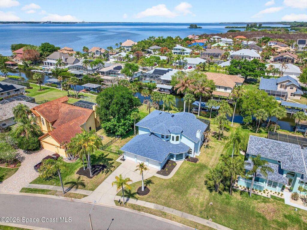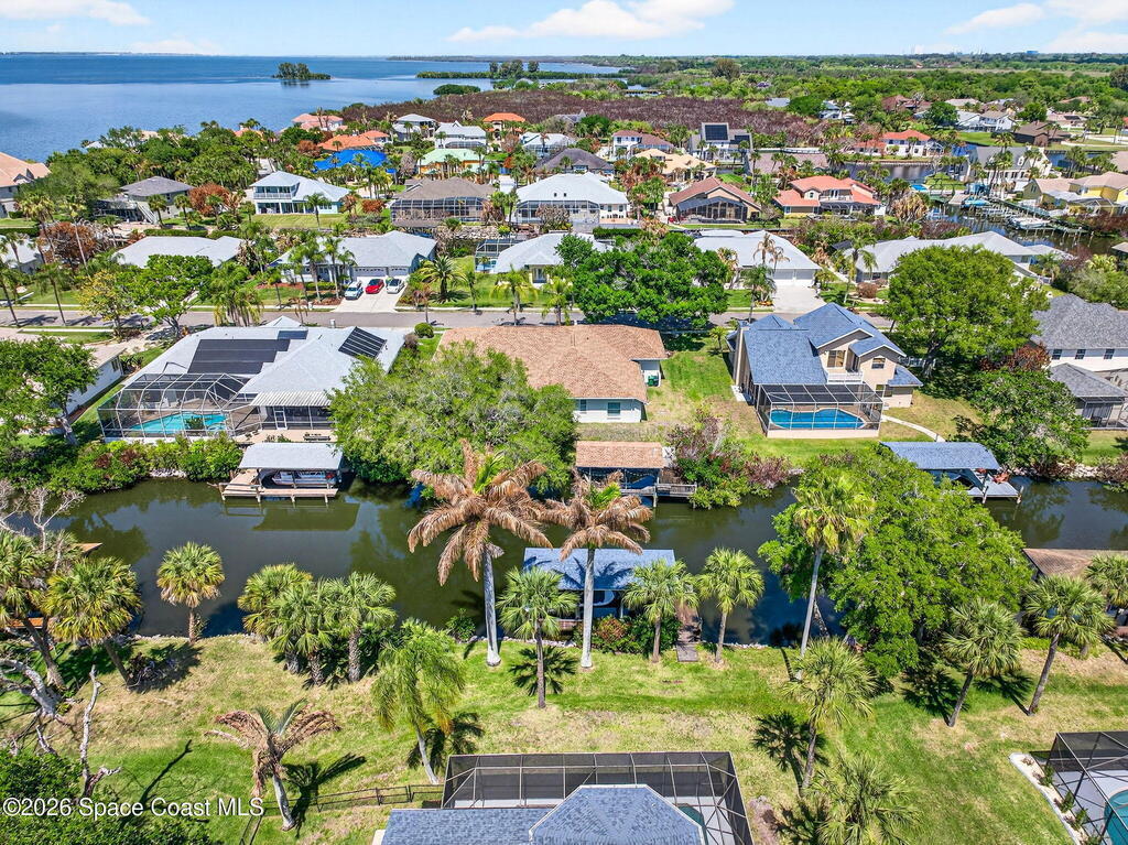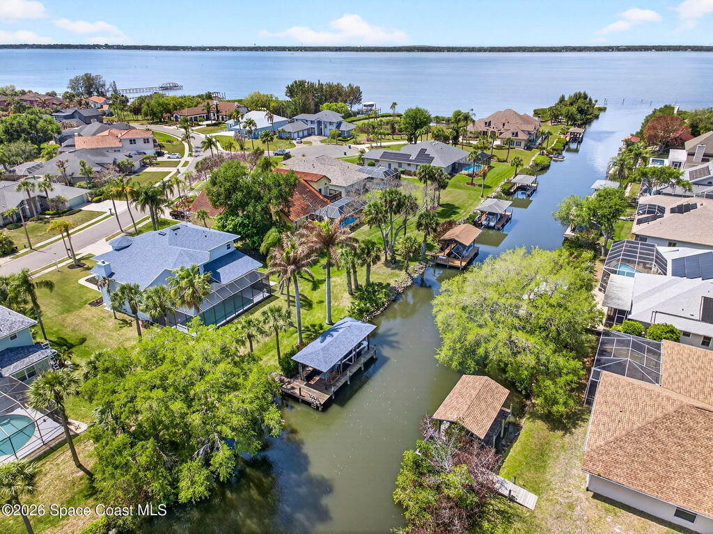 Hard to find spacious over 3,000 sq ft WATERFRONT POOL home w/ DIRECT access to the Intercoastal! NO bridges! Custom home surrounded by meticulous homes in the sought after neighborhood of Indian Bay! Roof 2023 new exterior paint & IMPACT windows & doors! Full private suite on the first floor & huge primary suite upstairs w/ river views! 3rd garage bay is under A/C for a perfect gym or hobby/workshop! Beautiful screened pool area w/ new refreshed decking overlooking the sprawling backyard & water! Covered boat dock currently set up to handle a 27' boat & 10,000# lift (but could potentially modify it for an even larger boat) Large foyer entry w/ soaring ceilings & an abundance of natural light greets you as you enter! Large living / dining combo room w/ gas fireplace! Massive kitchen w/ a breakfast bar that can seat all of the family & more! Plus a wonderful nook overlooking the pool & water! Options for laundry upstairs or down! Newer appliances too! Community boat launch! Come see!