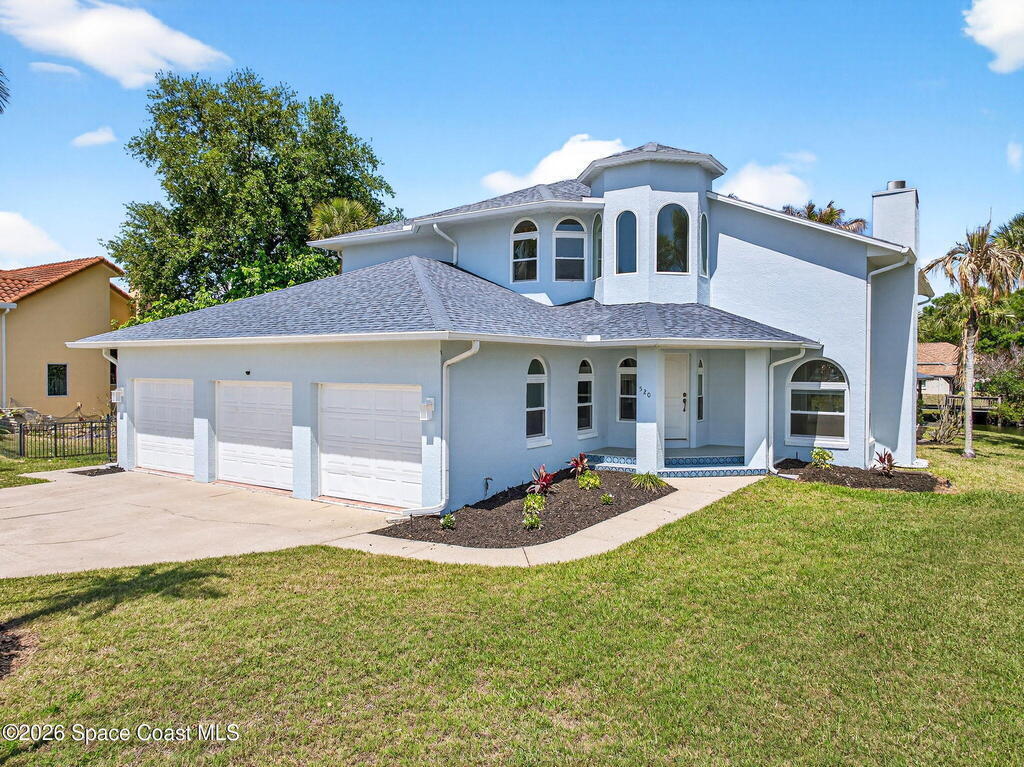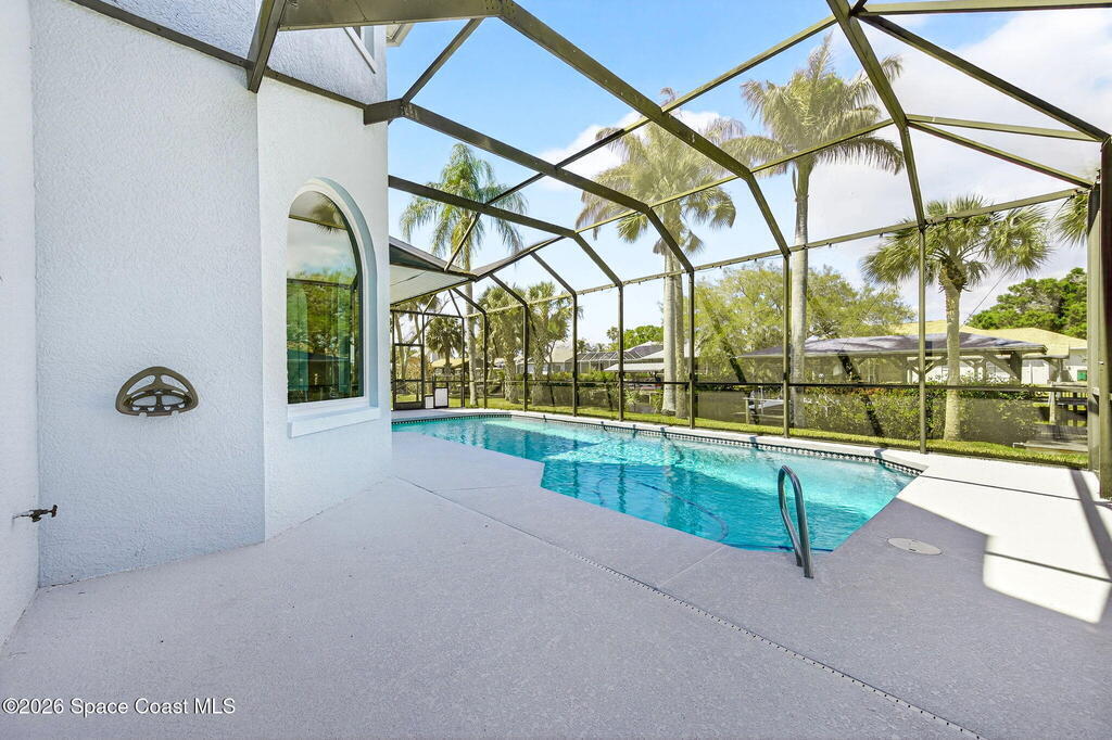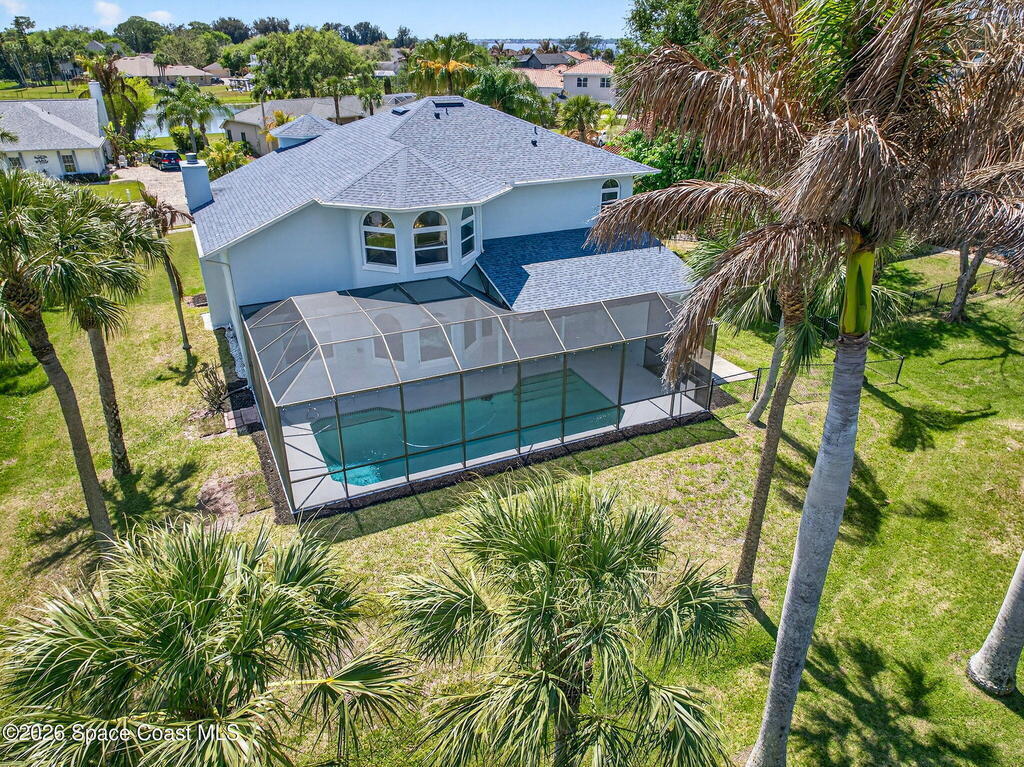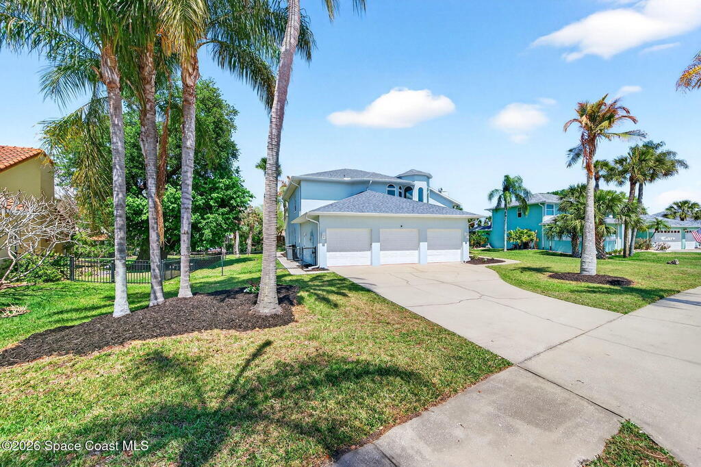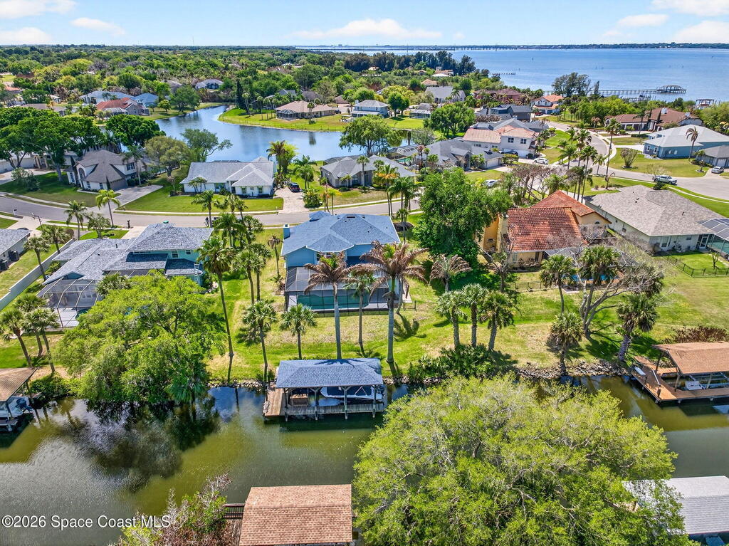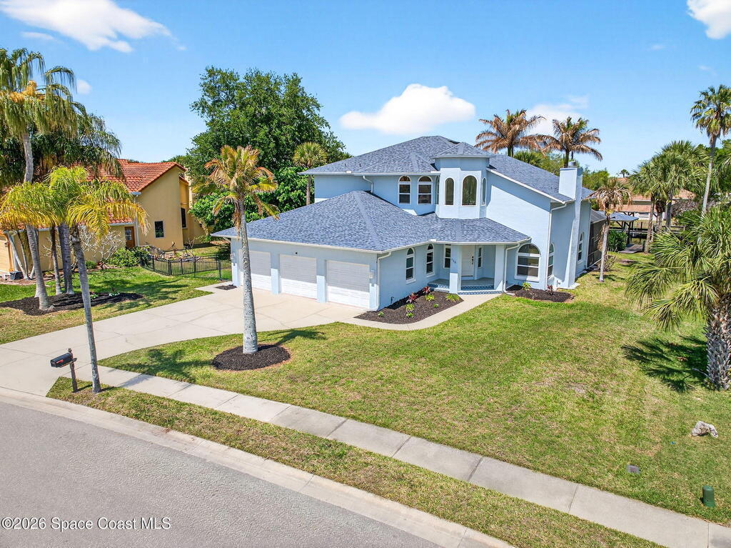 Hard to find spacious over 3,000 sq ft WATERFRONT POOL home w/ DIRECT access to the Intercoastal! NO bridges! Custom home surrounded by meticulous homes in the sought after neighborhood of Indian Bay! Roof 2023 new exterior paint & IMPACT windows & doors! Full private suite on the first floor & huge primary suite upstairs w/ river views! 3rd garage bay is under A/C for a perfect gym or hobby/workshop! Beautiful screened pool area w/ new refreshed decking overlooking the sprawling backyard & water! Covered boat dock currently set up to handle a 27' boat & 10,000# lift (but could potentially modify it for an even larger boat) Large foyer entry w/ soaring ceilings & an abundance of natural light greets you as you enter! Large living / dining combo room w/ gas fireplace! Massive kitchen w/ a breakfast bar that can seat all of the family & more! Plus a wonderful nook overlooking the pool & water! Options for laundry upstairs or down! Newer appliances too! Community boat launch! Come see!