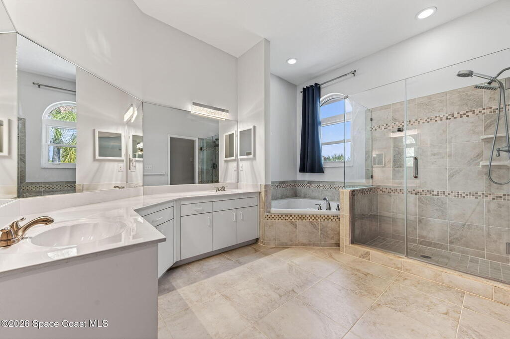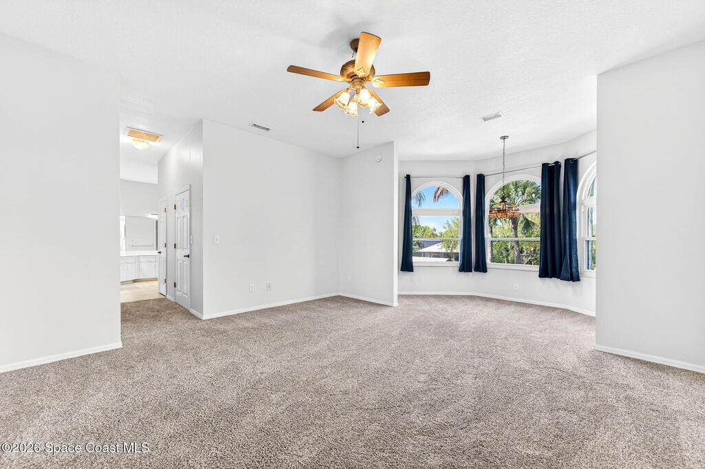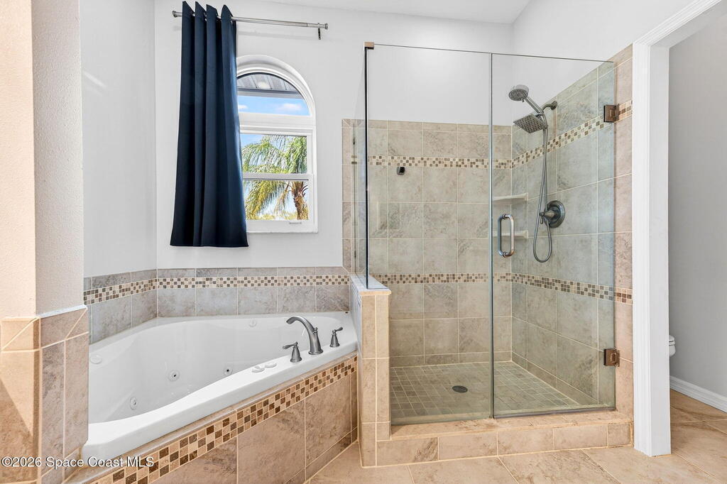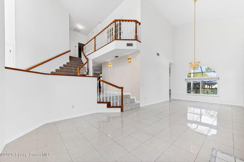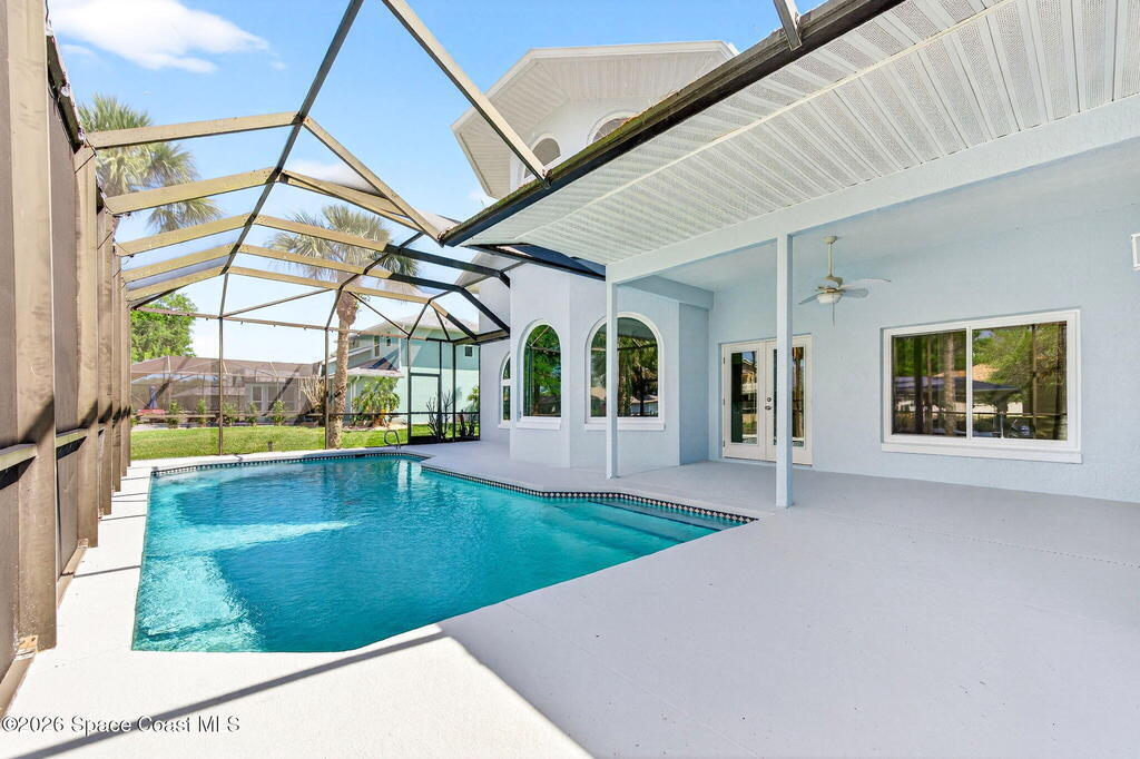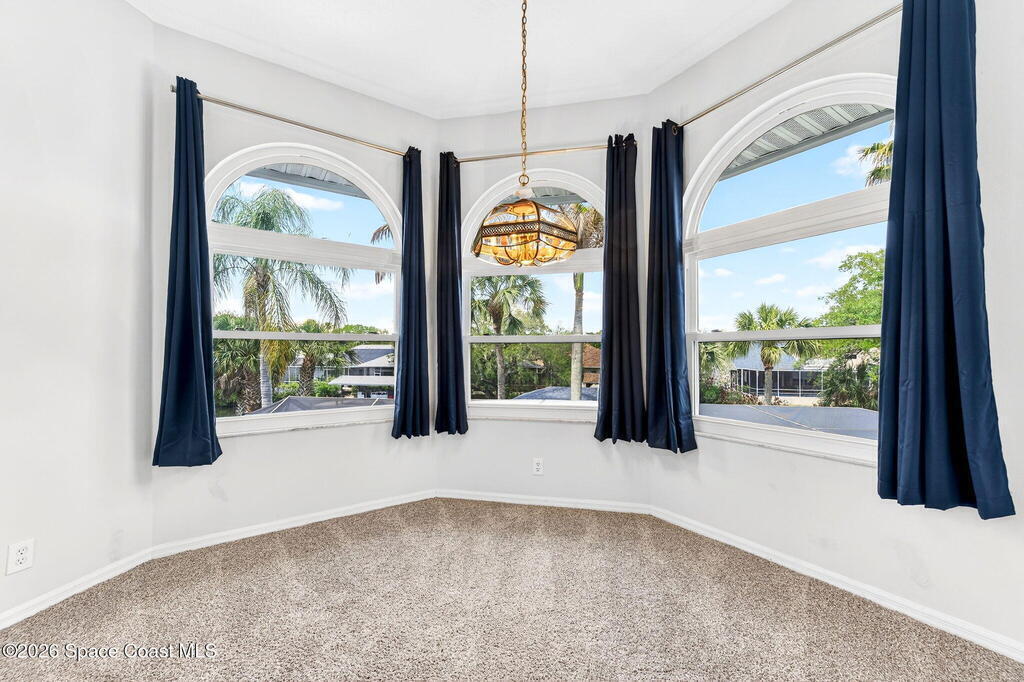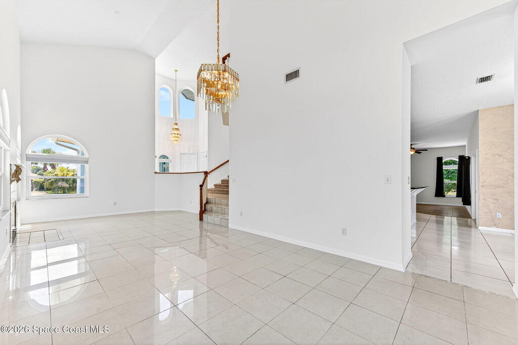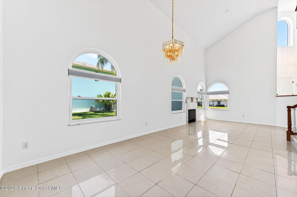 Hard to find spacious over 3,000 sq ft WATERFRONT POOL home w/ DIRECT access to the Intercoastal! NO bridges! Custom home surrounded by meticulous homes in the sought after neighborhood of Indian Bay! Roof 2023 new exterior paint & IMPACT windows & doors! Full private suite on the first floor & huge primary suite upstairs w/ river views! 3rd garage bay is under A/C for a perfect gym or hobby/workshop! Beautiful screened pool area w/ new refreshed decking overlooking the sprawling backyard & water! Covered boat dock currently set up to handle a 27' boat & 10,000# lift (but could potentially modify it for an even larger boat) Large foyer entry w/ soaring ceilings & an abundance of natural light greets you as you enter! Large living / dining combo room w/ gas fireplace! Massive kitchen w/ a breakfast bar that can seat all of the family & more! Plus a wonderful nook overlooking the pool & water! Options for laundry upstairs or down! Newer appliances too! Community boat launch! Come see!
