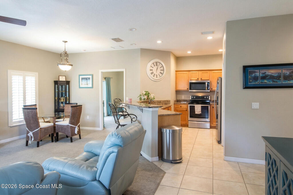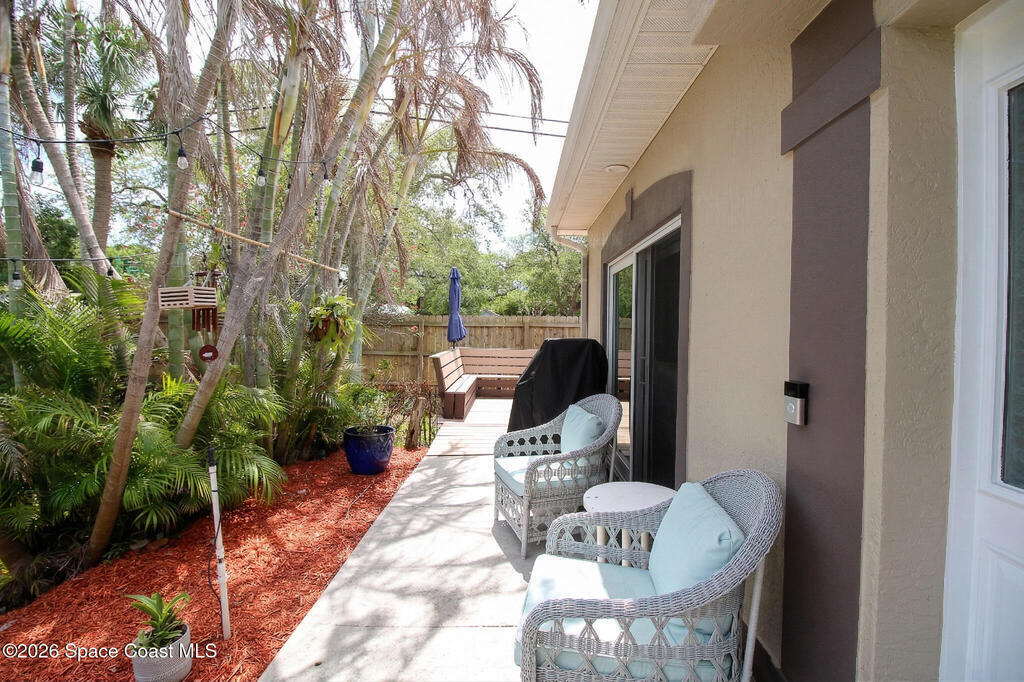 Welcome to the joy of beach life! Immaculate, virtually maintenance free, move in ready townhouse, with incredible upgrades and enhancements. This spacious 1783 sq ft layout w approximately 1400 sq ft under air, single story, 3 Bed, 2 Bath, 2 car garage, end unit Townhome, gives you the privacy and true feeling of a single private home with the convenience and ease of condo/townhouse living. New roof in 2024, new exterior paint in 2025, incredible outside deck fully rebuilt in 2022 w Timbertech composite, auto retractable Electric Sunsetter awning, new garage flooring/coating professionally installed in 2025, new hurricane rated impact sliding glass doors/all windows in 2026, lovely exotic high-level granite in kitchen with custom wooden cabinets, premium stainless-steel appliances, and so much more. This hidden gem checks all the boxes as your forever home, first time home, beach get away, or investment property, with the flexibility of only 1-month minimum rental terms.
