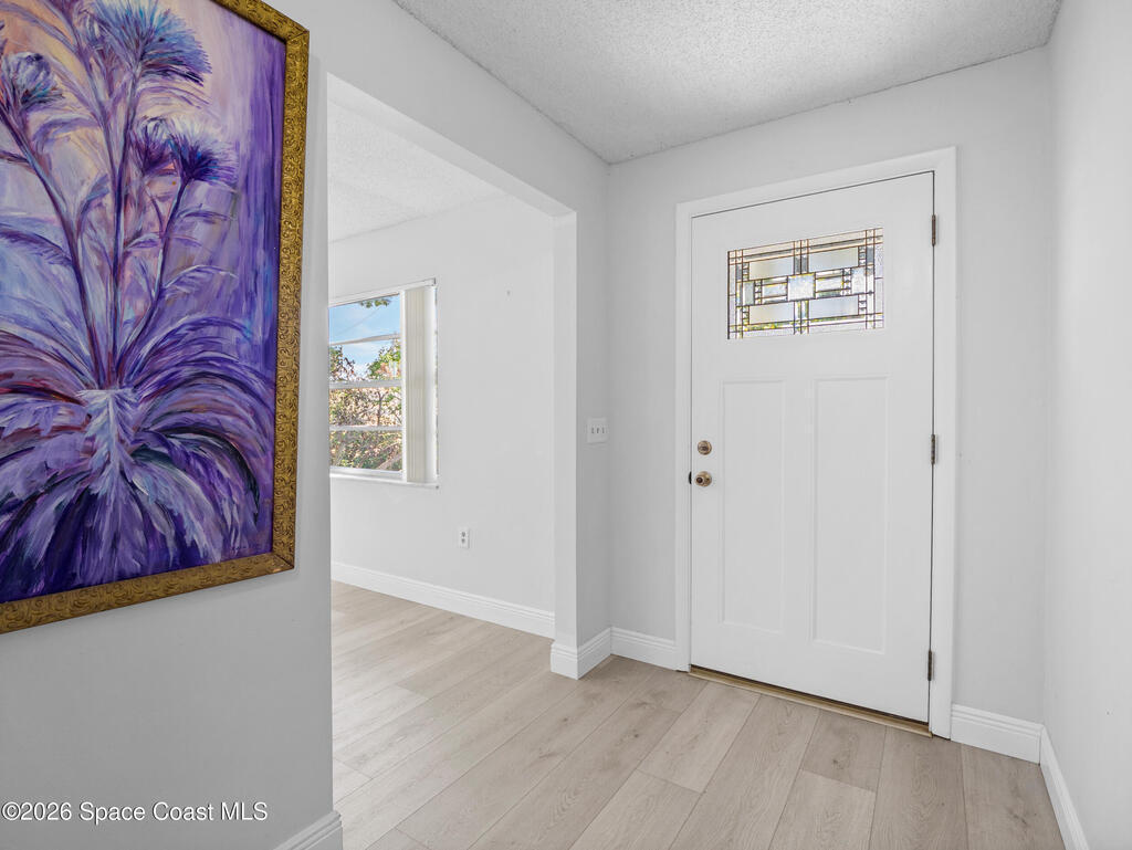 Charming and move-in ready! This 3-bedroom, 2-bath home offers 1,384 SF of comfortable living space plus a 306 SF patio, perfect for enjoying Florida living. Built in 1986, this well-maintained property features a 2022 kitchen remodel, updated bathroom vanities, new vinyl flooring throughout, and cozy carpet in the bedrooms. Filled with tons of natural light, the home also features new sliding glass doors leading to the patio for seamless indoor-outdoor living. Enjoy added curb appeal with a new impact-rated front door and newer exterior paint. Home includes a new garage door opener and 200 AMP electrical service. Washer and dryer convey for added convenience. The fully fenced yard showcases Florida native landscaping designed to attract butterflies, creating a peaceful outdoor retreat. Located in Flood Zone X for added peace of mind. Walking distance to park with walking trails and pickleball courts.