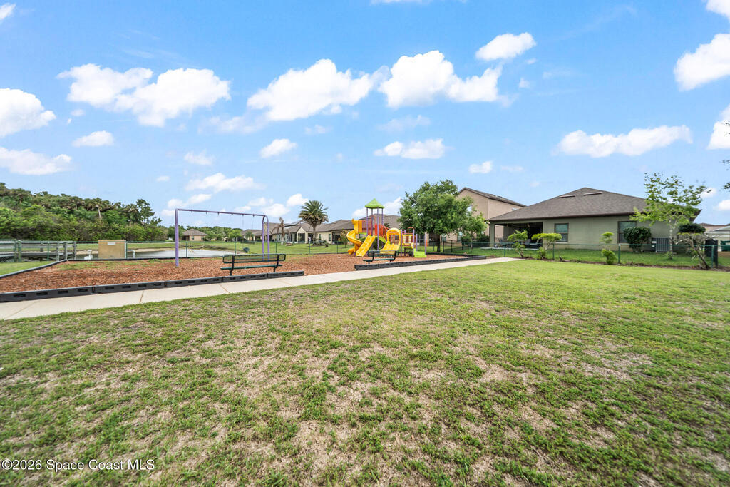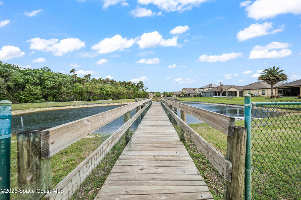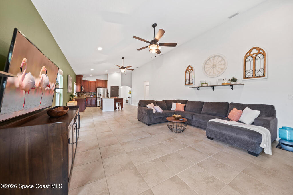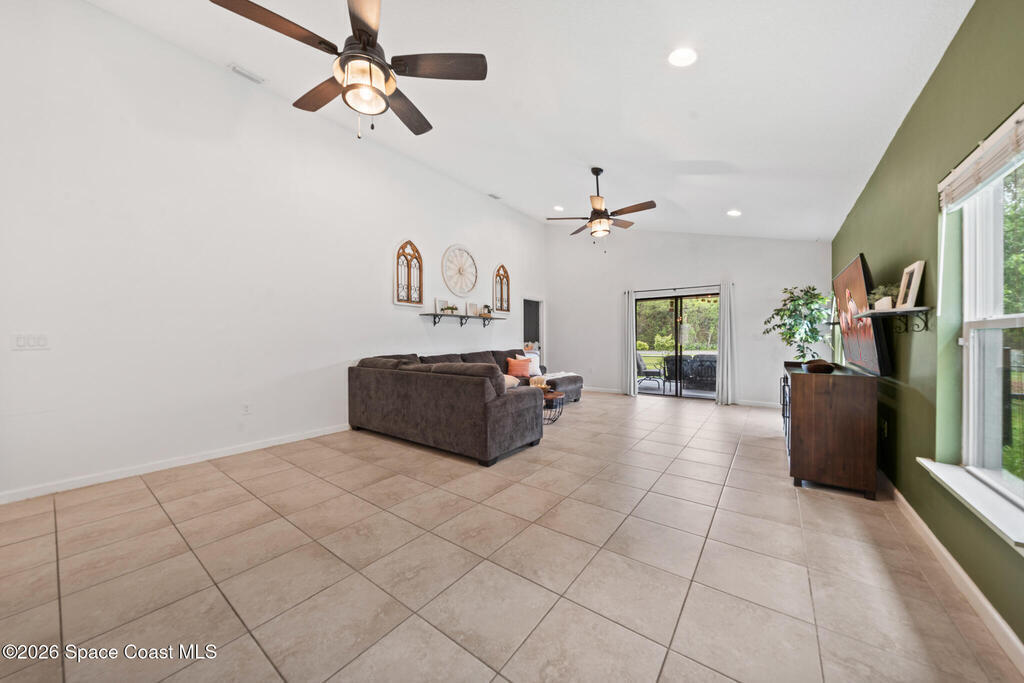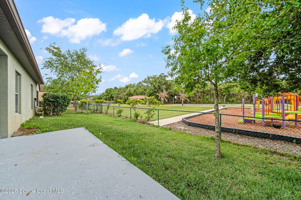 Welcome to this beautifully maintained 4-bedroom, 2-bath home in the gated community of Emerald Lakes in Cocoa. This light-filled home features an open floor plan with vaulted ceilings and sliding glass doors that bring in abundant natural light. The updated kitchen offers granite countertops, stainless steel appliances, and flows seamlessly into the main living and dining areas--ideal for everyday living and entertaining. Ceramic tile is featured in all wet areas, with updated flooring in the owner's suite (2025). The spacious owner's retreat includes a large ensuite with dual vanities, and updated walk-in shower (2023). Enjoy a private backyard with no rear neighbors, extended patio (2023), fire pit, and serene lake views. Additional upgrades include a 16+ SEER A/C (2022), outdoor refrigerator, fence (2021), and fresh exterior paint (May 2025). Roof and water heater (2015). Community amenities include a playground, basketball court, and jogging trail.