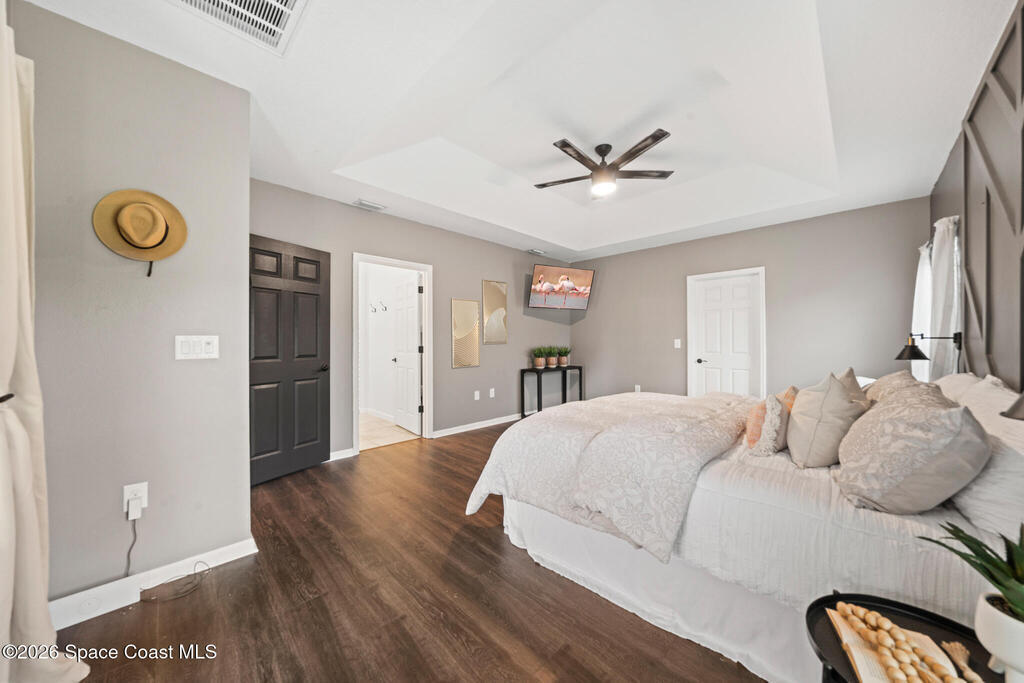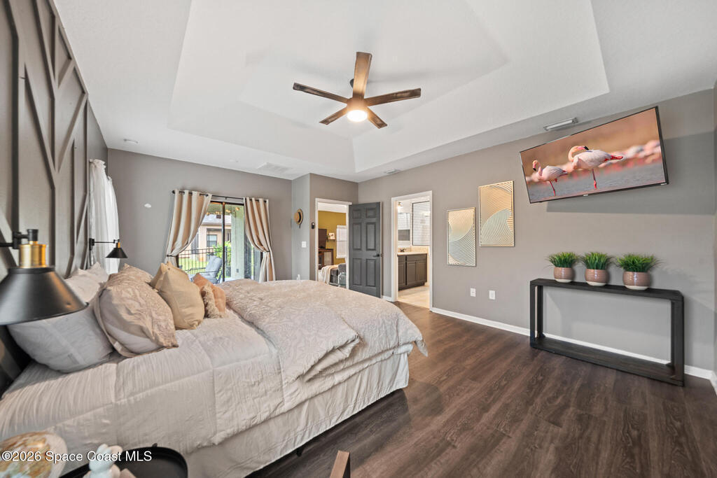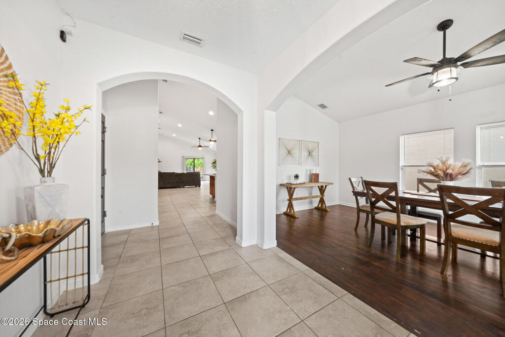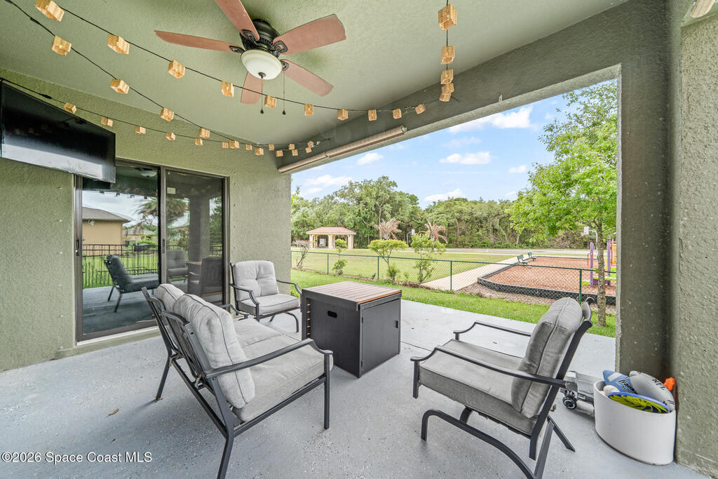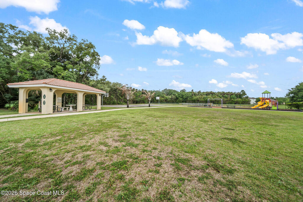 Welcome to this beautifully maintained 4-bedroom, 2-bath home in the gated community of Emerald Lakes in Cocoa. This light-filled home features an open floor plan with vaulted ceilings and sliding glass doors that bring in abundant natural light. The updated kitchen offers granite countertops, stainless steel appliances, and flows seamlessly into the main living and dining areas--ideal for everyday living and entertaining. Ceramic tile is featured in all wet areas, with updated flooring in the owner's suite (2025). The spacious owner's retreat includes a large ensuite with dual vanities, and updated walk-in shower (2023). Enjoy a private backyard with no rear neighbors, extended patio (2023), fire pit, and serene lake views. Additional upgrades include a 16+ SEER A/C (2022), outdoor refrigerator, fence (2021), and fresh exterior paint (May 2025). Roof and water heater (2015). Community amenities include a playground, basketball court, and jogging trail.