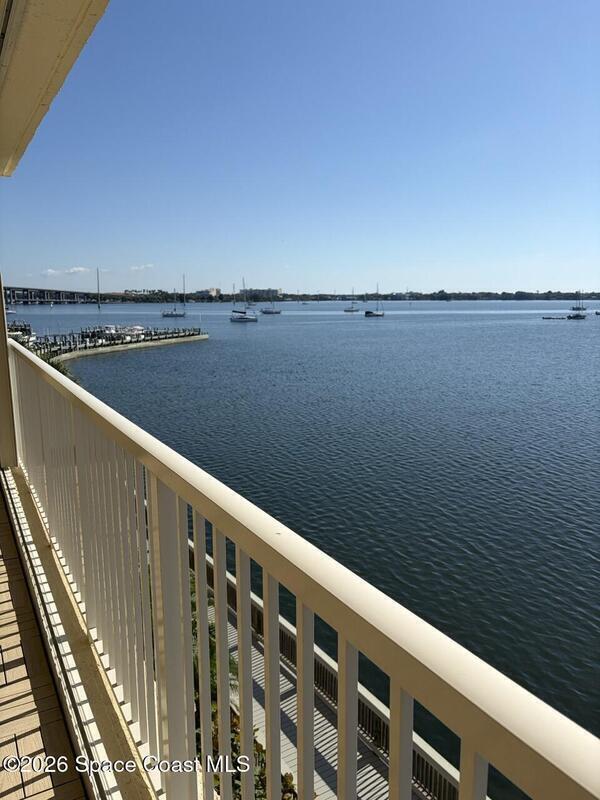 Enjoy stunning south and east unobstructed Indian River views from your private balcony with upgraded deck flooring. This 2-bedroom, 2-bath condo features an updated kitchen and baths with granite countertops, front-load washer/dryer, and plantation shutters throughout.The primary suite offers river views, balcony access, and a custom walk-in closet plus additional storage. Hurricane shutters provide added peace of mind. Community amenities include a pool with hot tub, gym, social room, tennis and basketball courts, and a library with billiards. No Pets.
