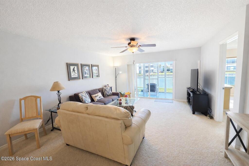 Own a slice of Cocoa Beach paradise in this 2BR/2BA Ground Floor waterfront condo in Harbor Isles! Banana River views just 2 blocks from the beach. Enclosed hurricane-rated patio creates a bonus living space perfect for relaxing and enjoying dolphins, manatees, and stunning sunsets. Updated kitchen with Corian countertops and an office/nook separe from the dining room. Spacious primary suite with water views, walk-in closet, oversized vanity and separate shower with accessible features. washer/dryer in laundry room convey. Resort-style amenities include 3 pools (one heated), tennis courts, pickleball, clubhouse, indoor gym, billiards, docks, gated RV/boat storage and much more! Detached garage included! Come see today!