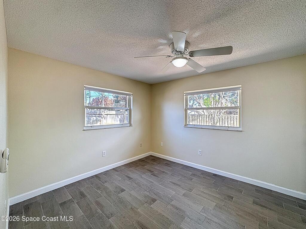 Here's the 4 bedroom rental on Merritt Island that you've been looking for! Updated Baths, Kitchen, Windows, Tankless Water Heater 2007, and a newer Enclosed Florida Room with New A/C. New tiled floors throughout along with fresh interior paint, new baseboards and interior doors. The 4th bedroom does not have a closet, so it can be also be used as a den/office or play room for the kids. Private backyard with pavered walkway and fencing. Come see this beautiful property today as it won't last long! Dryer provided, but not warranted.