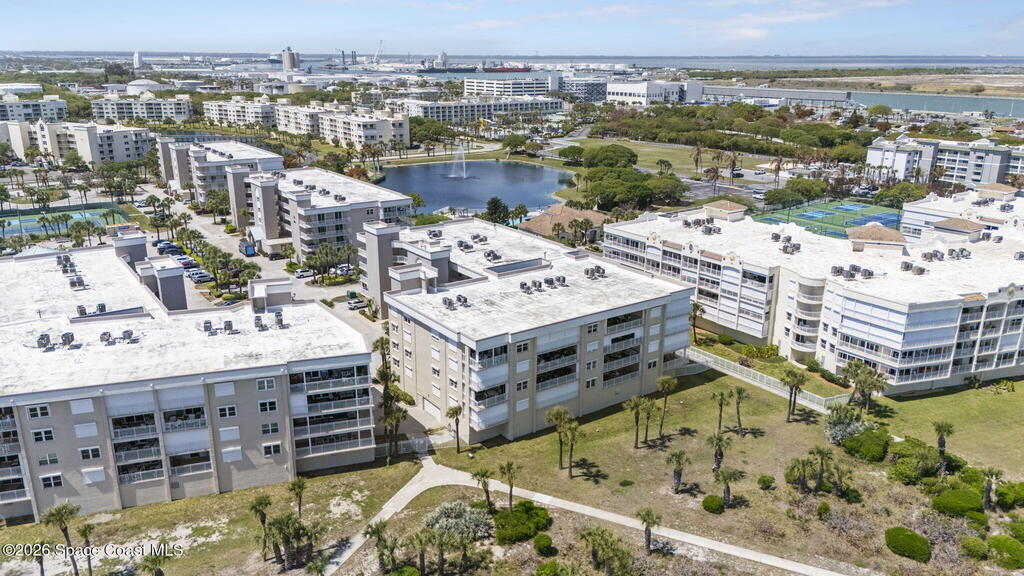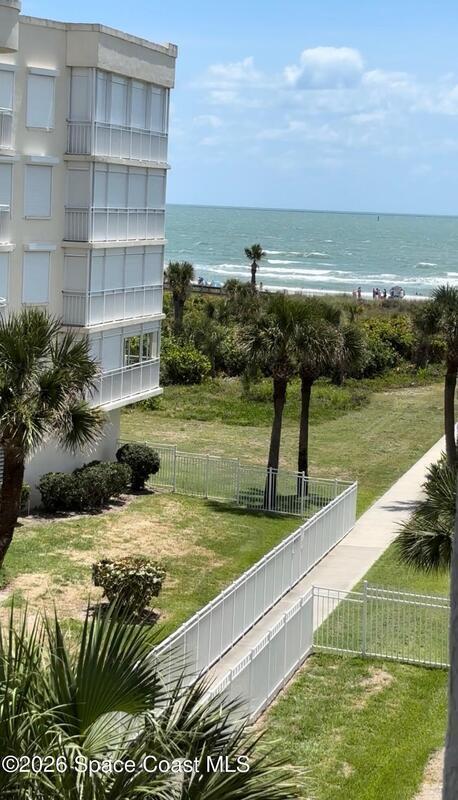 Tucked away in a gated Cape Canaveral community, this updated condo offers privacy with unbeatable convenience--just minutes from restaurants and Jetty Park. Inside, natural light fills the space, highlighting matching vinyl flooring throughout. The modern kitchen features quartz countertops, stainless steel appliances, and a breakfast bar overlooking the family room. The bedroom includes plantation shutters and an updated, spacious bath with a walk-in shower. Step onto the oversized balcony (with NEW hurricane shutter) to relax with ocean breezes and enjoy weekly cruise ship views. Amenities include a clubhouse, tennis and pickleball courts, plus a heated pool and spa. Complete with newer A/C and a private 1-car garage under the building. All concrete restoration has been completed!