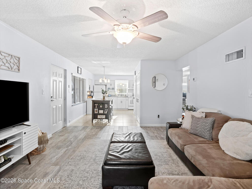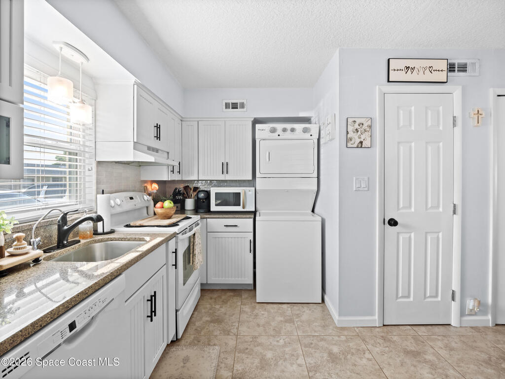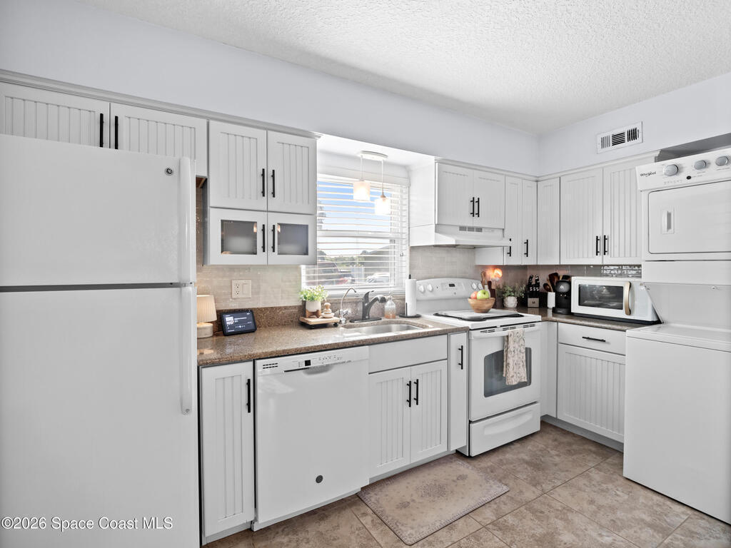 Welcome to easy living in this well-maintained 2-bedroom, 2-bath condo in the heart of Titusville! Offering 1,056 square feet, this unit features an updated kitchen with a center island--perfect for both everyday living and entertaining. Natural light fills the space, creating a bright and inviting atmosphere throughout. Tile flooring flows through the main living areas, with comfortable carpet in the bedrooms. Enjoy the added bonus of a screened porch--ideal for relaxing year-round--plus an in-unit stackable washer and dryer and assigned parking. The HOA of $327.04 covers water, cable, internet, and select insurance, adding great value. Centrally located near shopping, dining, and the best of the Space Coast.
