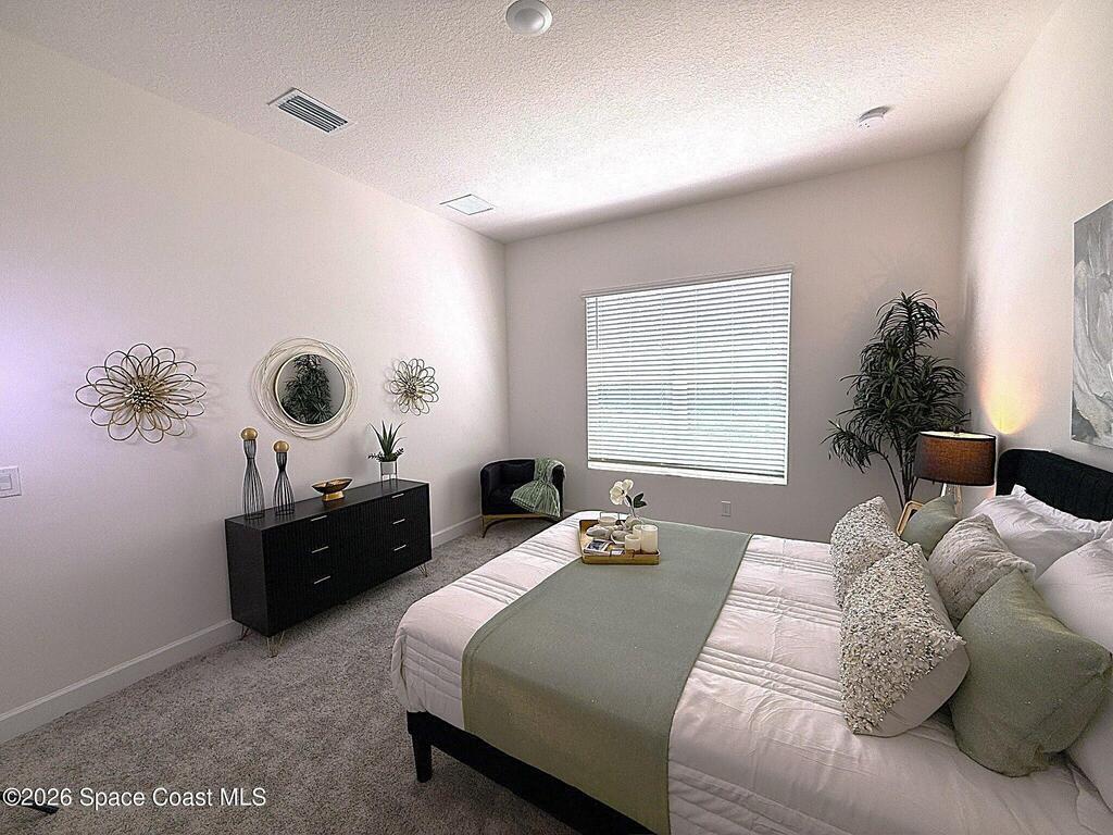 To Be Built - The Ericka 3 by a local builder. This impressive 4-bedroom, 2-bath, 3-car garage home offers 2,087 sq. ft. of refined living on city water and sewer. Designed with attention to detail, it features soaring 10' ceilings, 8' interior doors, quartz countertops, and fully tiled showers throughout. The primary suite serves as a private retreat with an oversized walk-in shower, transom window, and frameless glass enclosure. The kitchen impresses with 42'' bump-and-stagger cabinetry with crown molding, elegant backsplash, walk-in butler's pantry, and refrigerator included. The open-concept layout is ideal for entertaining, complemented by tile flooring in main areas and upgraded carpet in bedrooms. Epoxy-finished front and rear entries complete the look. Buyers may select design finishes up to a certain point in the build. Photos represent a completed spec home. Tour the finished Ericka 3 at 557 Castana Ave SE, Palm Bay 32909 before it's gone.