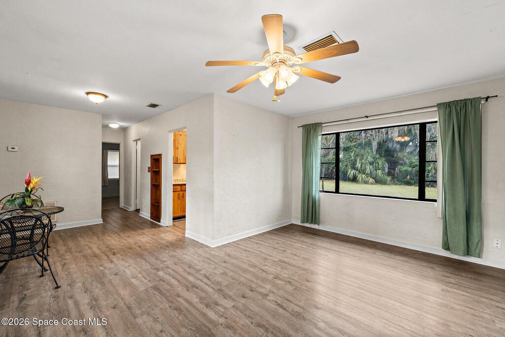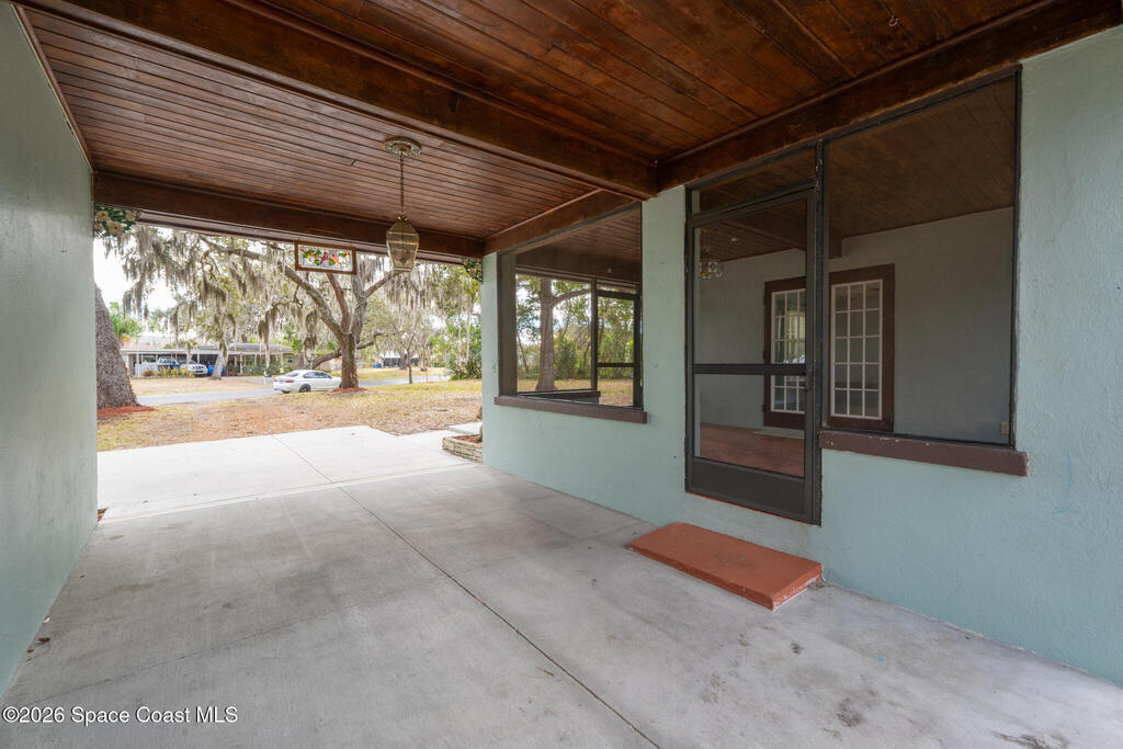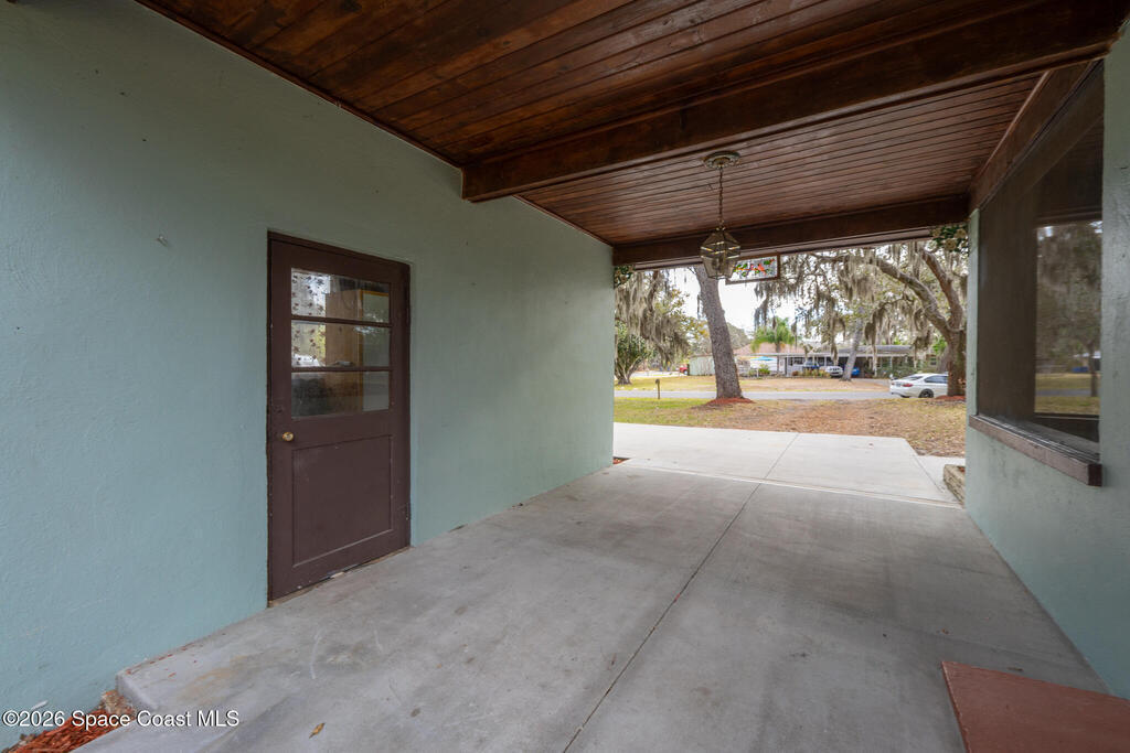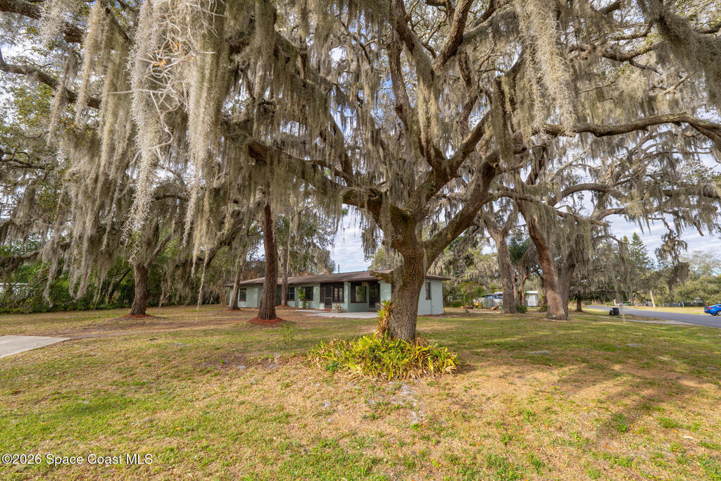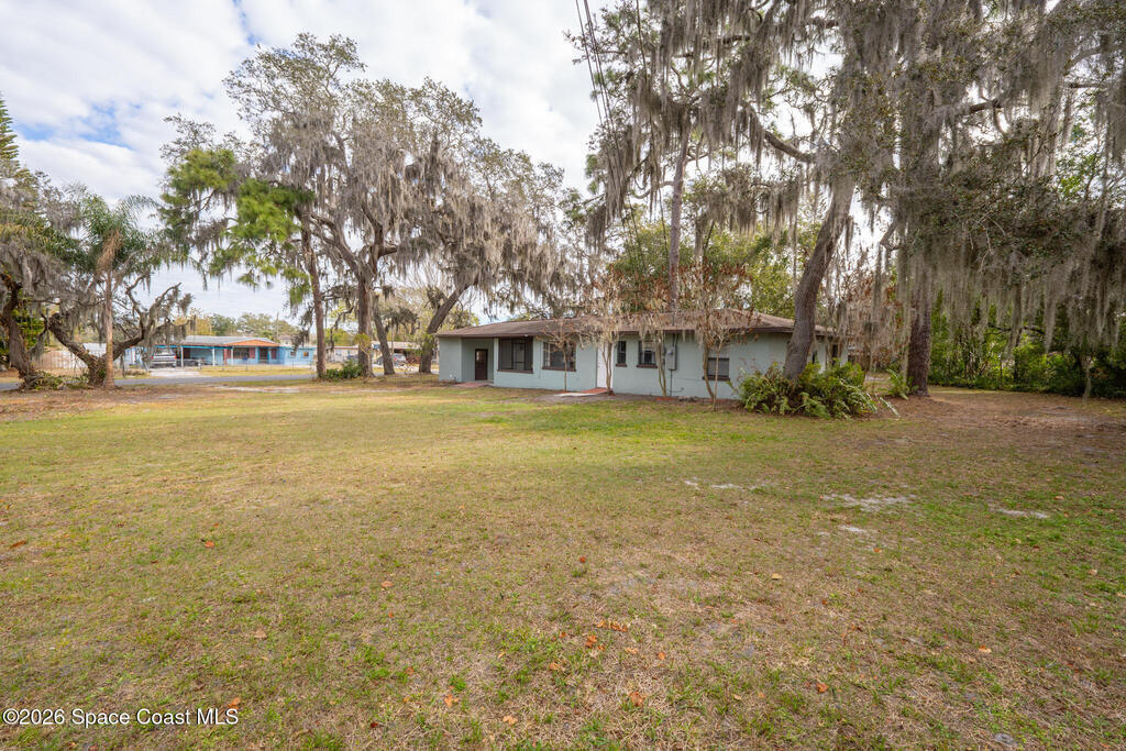 Looking for a beautiful private sanctuary of a home? This 2 bedroom 1 1/2 bath sits on a corner half acre home site in the middle of Titusville. New (2023) A/C, water heater, roof, windows, electric panel 200 AMP and attic insulation. The main bathroom just received a new shower and plumbing fixtures plus the main sewer line from street to house was just replaced.. Kitchen also includes a new microwave, stove and refrigerator. Luxury vinyl flooring in the main area and kitchen, tile in the bedrooms. Plenty of storage space in the huge laundry room.. Check out the screened in porch! Tongue and groove cedar compliment the roof for a beautiful Florida vibe! No HOA plenty of room to park your toys!!!