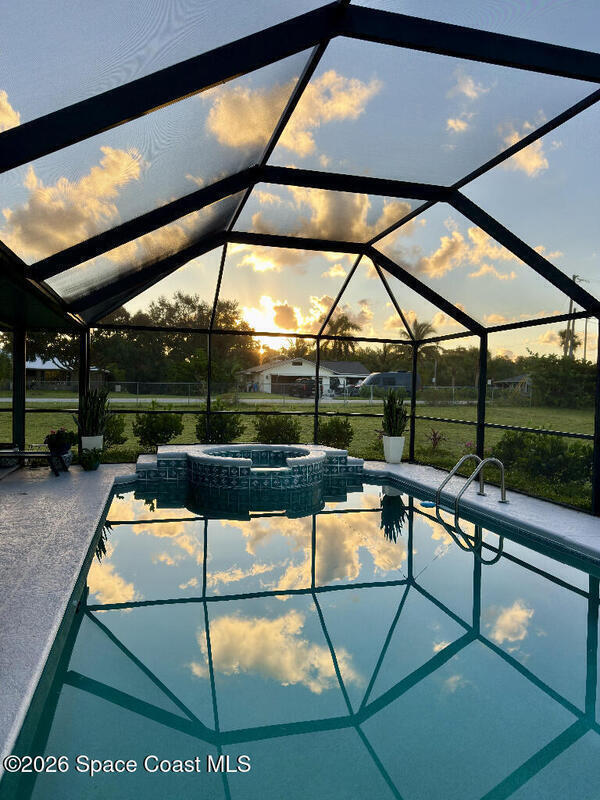 Welcome to your next home at 9010 Central Ave desirable Micco-- a wonderful property offering comfort, space, and Florida lifestyle amenities all in one. Originally built in 1990, this well-appointed single-family residence sits on a generous 0.89-acre lot, providing privacy and room for outdoor living and entertaining. Recent upgrades over $125k include roof (2022), pool equipment (2022), water heater (2022), shed with 50 amp service (2023), hurricane rated/ energy efficient Windows (2023), whole house water filtration system (2023), exterior house paint (2024) and all new appliances (washer, dryer, fridge, stove, and microwave), and your very own hideaway golf simulator!! Smart Home control capable for lights, fans, locks, and garage door.Step inside to discover 4 spacious bedrooms and 2 full bathrooms, with approximately 2,350 sq ft of living space -- perfect for family living or hosting guests.