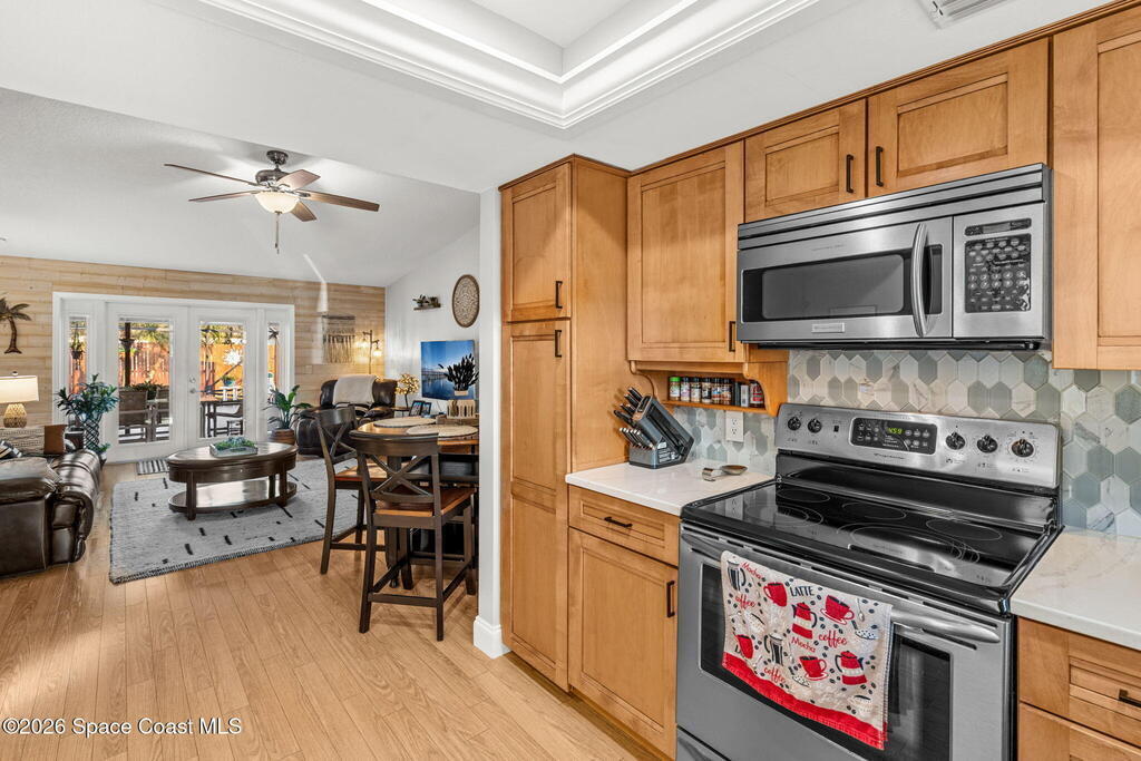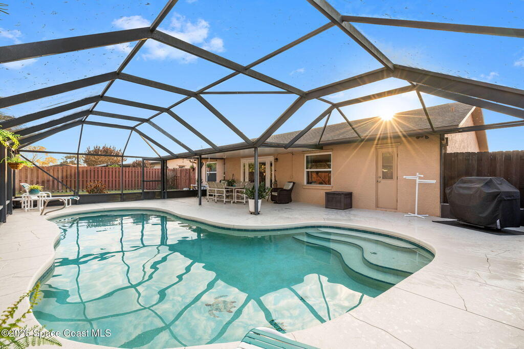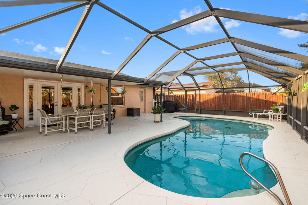 Proudly offered by the original owner, this well-maintained home is located in a highly desirable neighborhood and showcases years of thoughtful updates. Major improvements include a newer roof (2018), impact-rated garage door (2020), updated windows and French doors (2016), and a gas water heater (2019). Inside, you'll find laminate flooring throughout, vaulted ceilings, newer ceiling fans, and updated interior doors with a custom closet system. The kitchen features thoughtfully designed cabinetry with soft-close drawers, pull-out pantry shelving, quartz countertops, and a modern glass backsplash. Bathrooms have been recently updated with a clean, contemporary feel. Enjoy outdoor living with a screened enclosure featuring a fiberglass roof and maintained pool. Gas is available for the kitchen, and the A/C has been recently checked for added peace of mind.