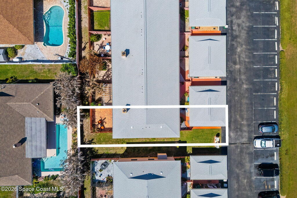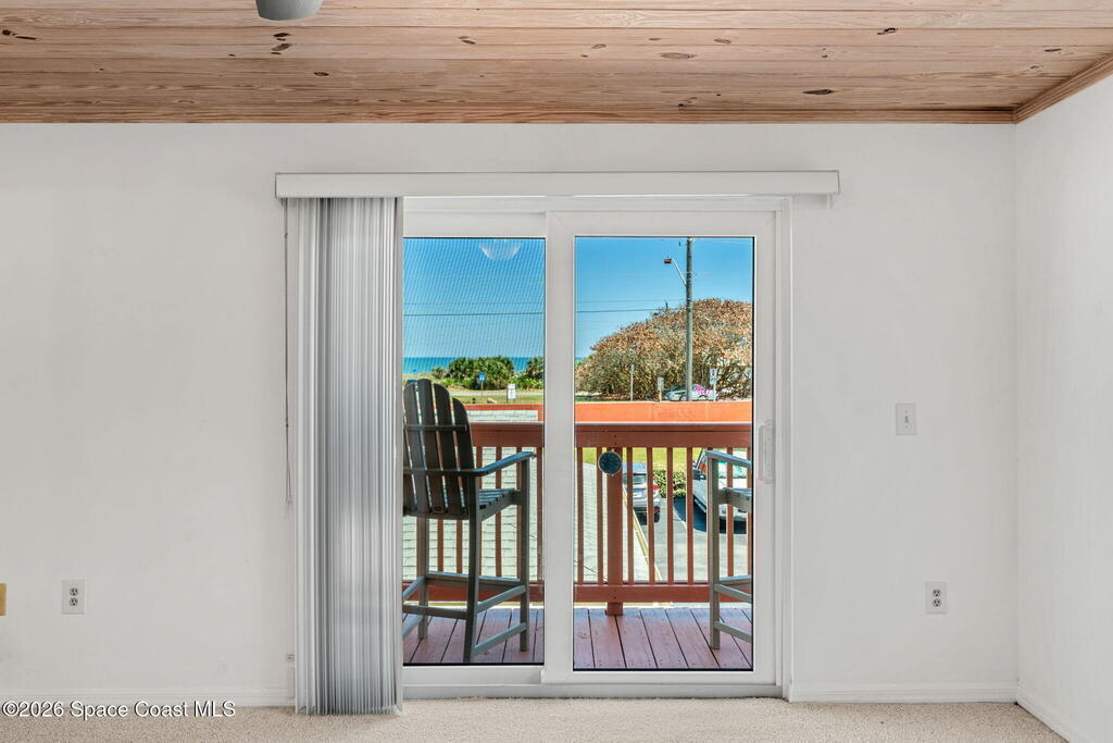 Blue Ocean Views, Impact Glass and a Private Backyard- This Is Beachside Living Done RIGHT!Enjoy beautiful blue ocean views from your primary suite balcony in this corner unit, perfectly positioned just across from city-owned land at Crotty Beach Park, offering coastal scenery that's hard to find. High-impact windows and sliders and a 2021 roof provide peace of mind, along with a 2020 hot water heater and 2017 HVAC system and the HOA covers roof replacement, adding even more long-term value. Inside, the newer kitchen features granite countertops, shaker cabinetry, and a seamless flow into the main living spaces for easy, functional living. Step outside to your private backyard with fresh pavers and ambient lighting or enjoy a separate courtyard space. Additional highlights include a private one-car garage with attic storage, assigned parking and a heated community pool. This is beachside living with views, updates and low-maintenance perks that are HARD to come by!